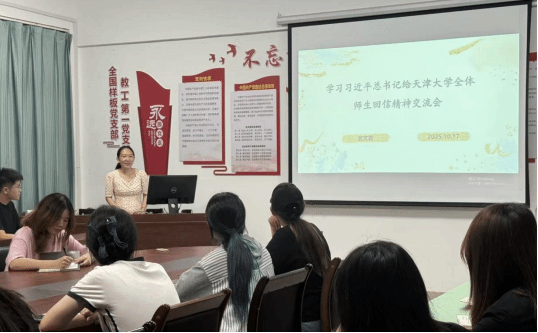 为深入学习领会习近平总书记给天津大学、中国农业大学校庆的回信精神,近日,我院习近平新时代中国特色社会主义思想读书社于吴迪楼405党团活动室成功举办“学习回信精神,引领青春奋进”主题交流会,院读书社指导老师武文君、社团成员及各小组代表共计30余人参会。