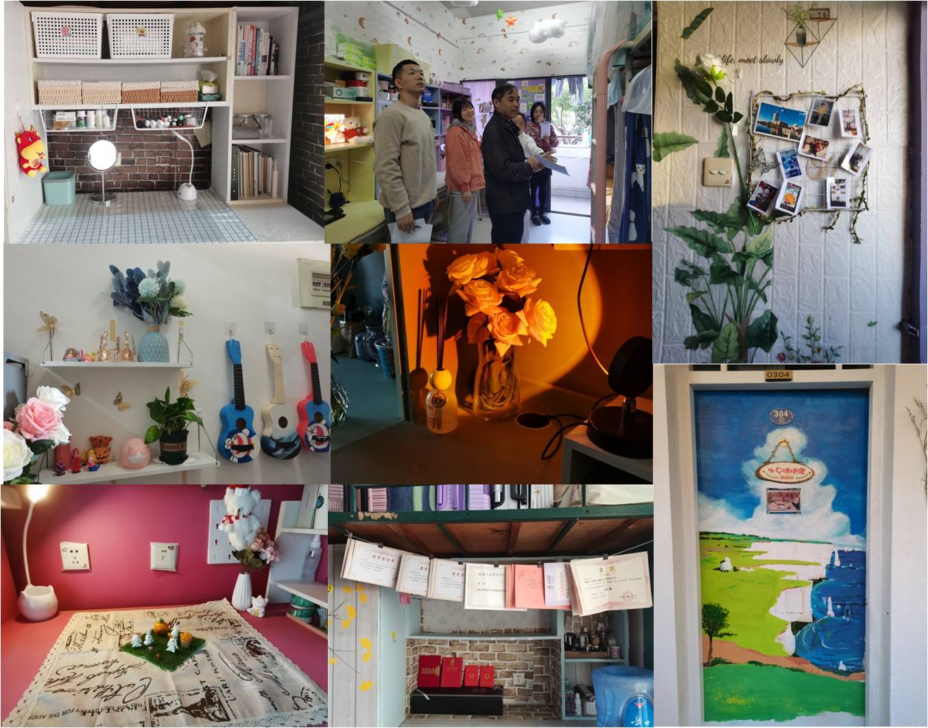 本届宿舍美化大赛以“四季卧寝”为美化布置主题,内容分为门牌设计、整体美化、内务卫生以及“我眼中的集大”四大模块,比赛要求主题鲜明、情趣高雅、内容健康、富有正能量。各宿舍装扮独具特色,展现出我院学子多样化的风采和创造性的思维。最终,来自第四社区7#318、8#507、小高13D#220的三间宿舍荣获本次比赛一等奖,其他宿舍分别获得二、三等奖、优秀奖和门面美化奖。