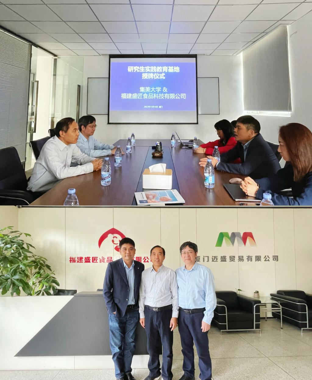 11月14日,我院党委副书记朱坤道、食工系主任翁武银教授、毕业班辅导员一行前往福建盛匠食品科技有限公司,开展研究生实践教育基地授牌仪式和“访企拓岗促就业”专项活动。
