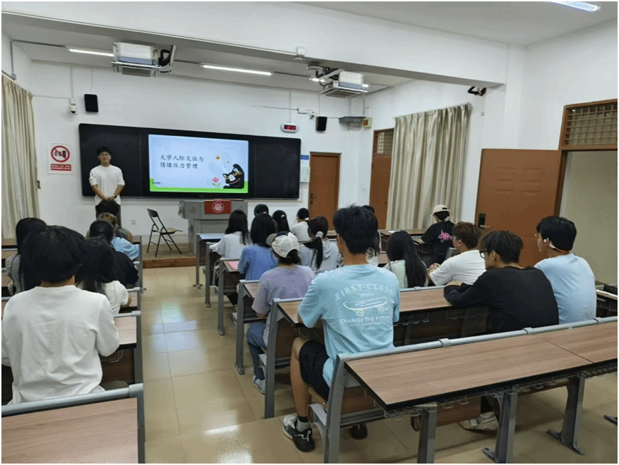 班会围绕“大学人际交往”、“情绪管理”和“压力管理”等主题展开。班会活动形式丰富多彩,包括心理健康知识科普、心理测试及分析、心理健康影片观赏等,让同学们在参与中体验、学习和成长。心理健康主题班会的开展,营造了关注心理健康、重视心理健康的氛围,提升了同学们的自信及班级凝聚力;在今后的心理健康教育工作中,各班心理委员也将担负起心理健康知识宣传员的角色,传播心理健康知识,适时开展朋辈辅导,为大学生健康快乐地学习和生活提供帮助。