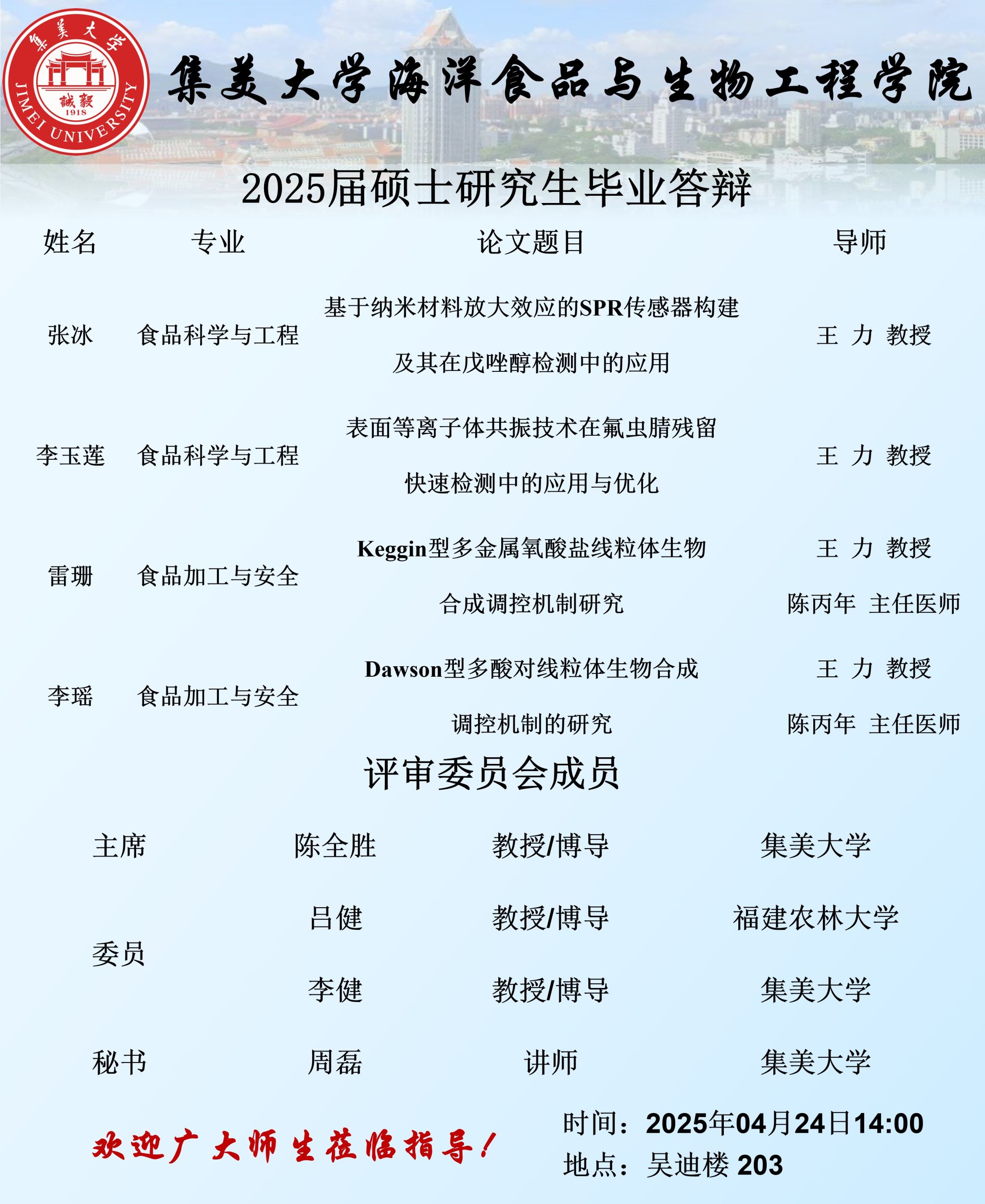 2025届硕士研究生毕业答辩公告(2025.04.24)
