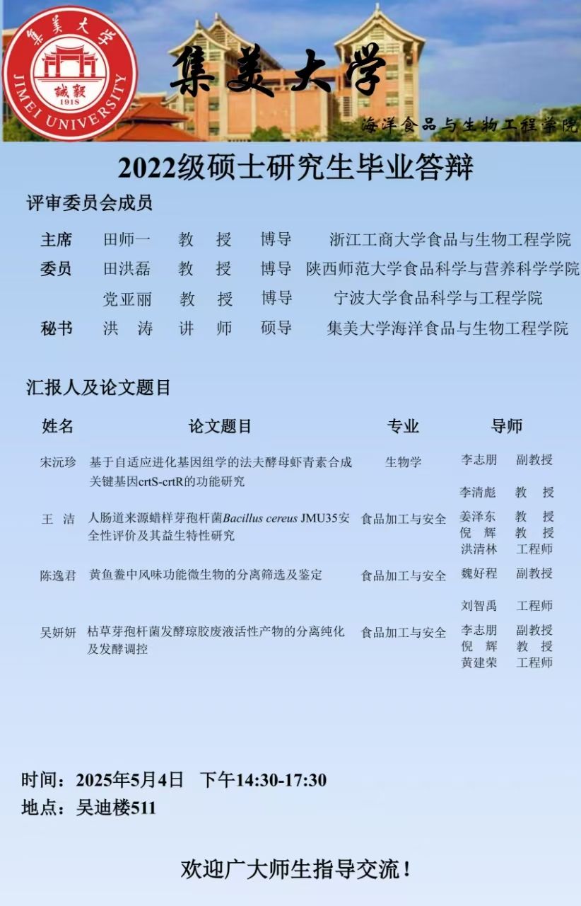 2025届硕士研究生毕业答辩公告(2025.05.04)