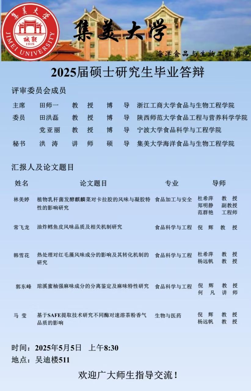 2025届硕士研究生毕业答辩公告(2025.05.05)