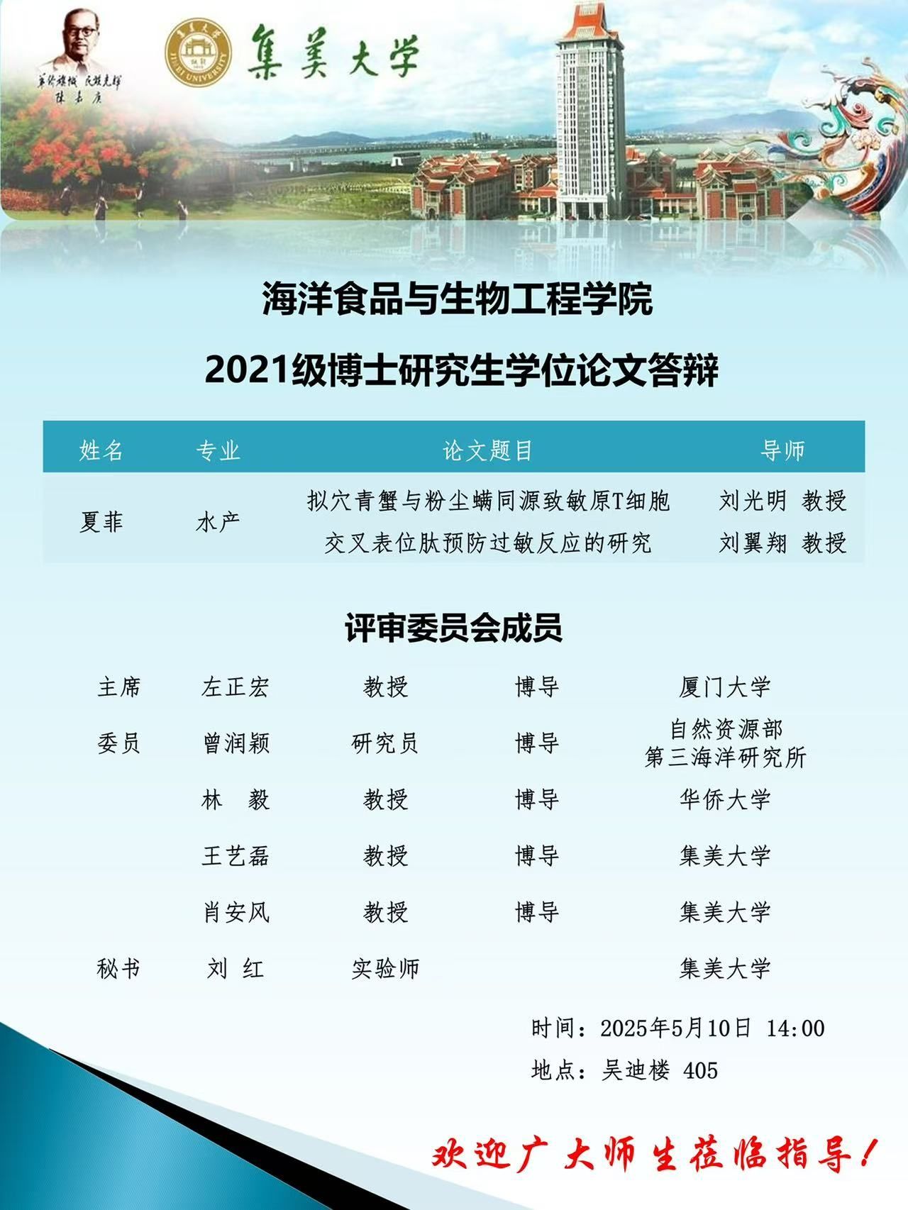2025届博士研究生毕业答辩公告(2025.05.10)