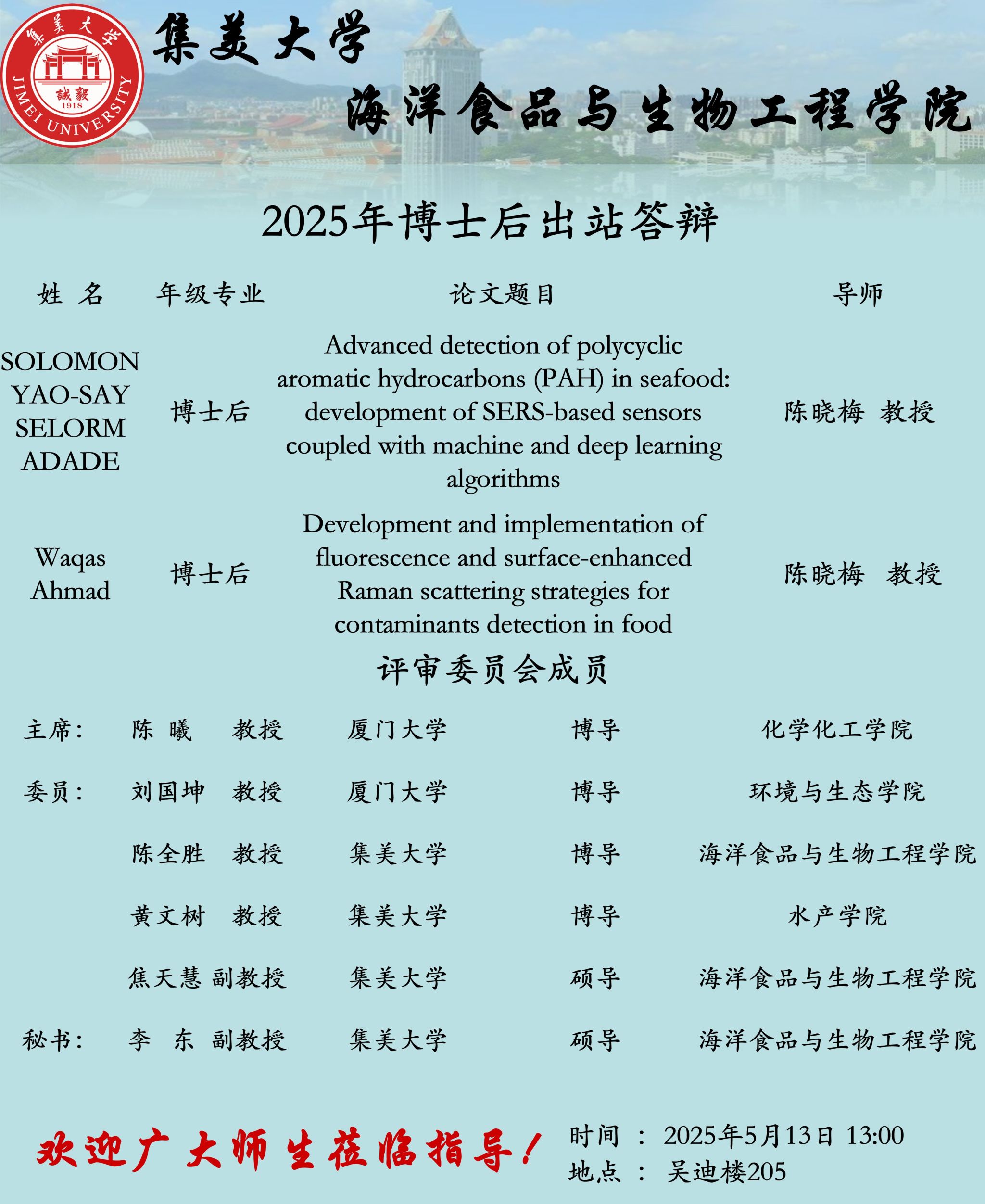 博士后出站答辩公告(2025.05.13)