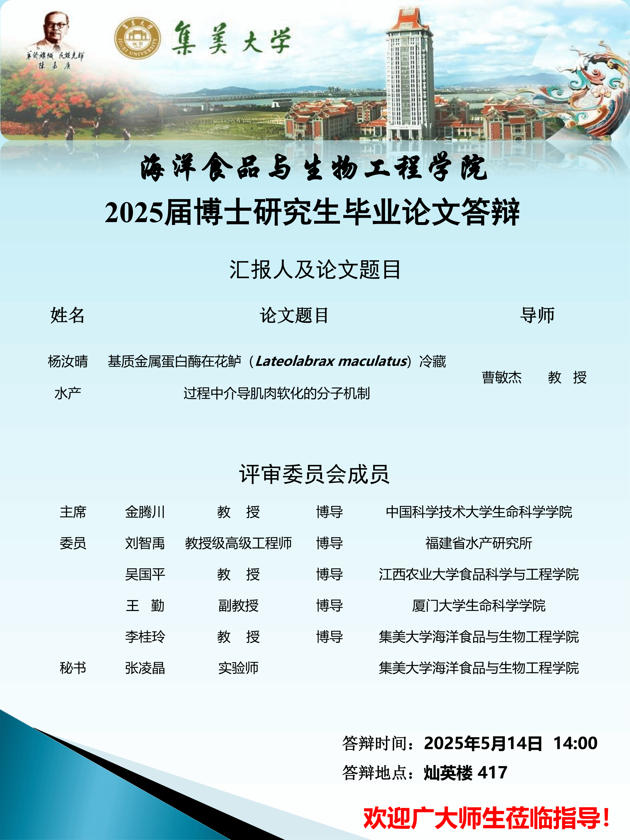 2025届硕士研究生毕业答辩公告(2025.05.14)