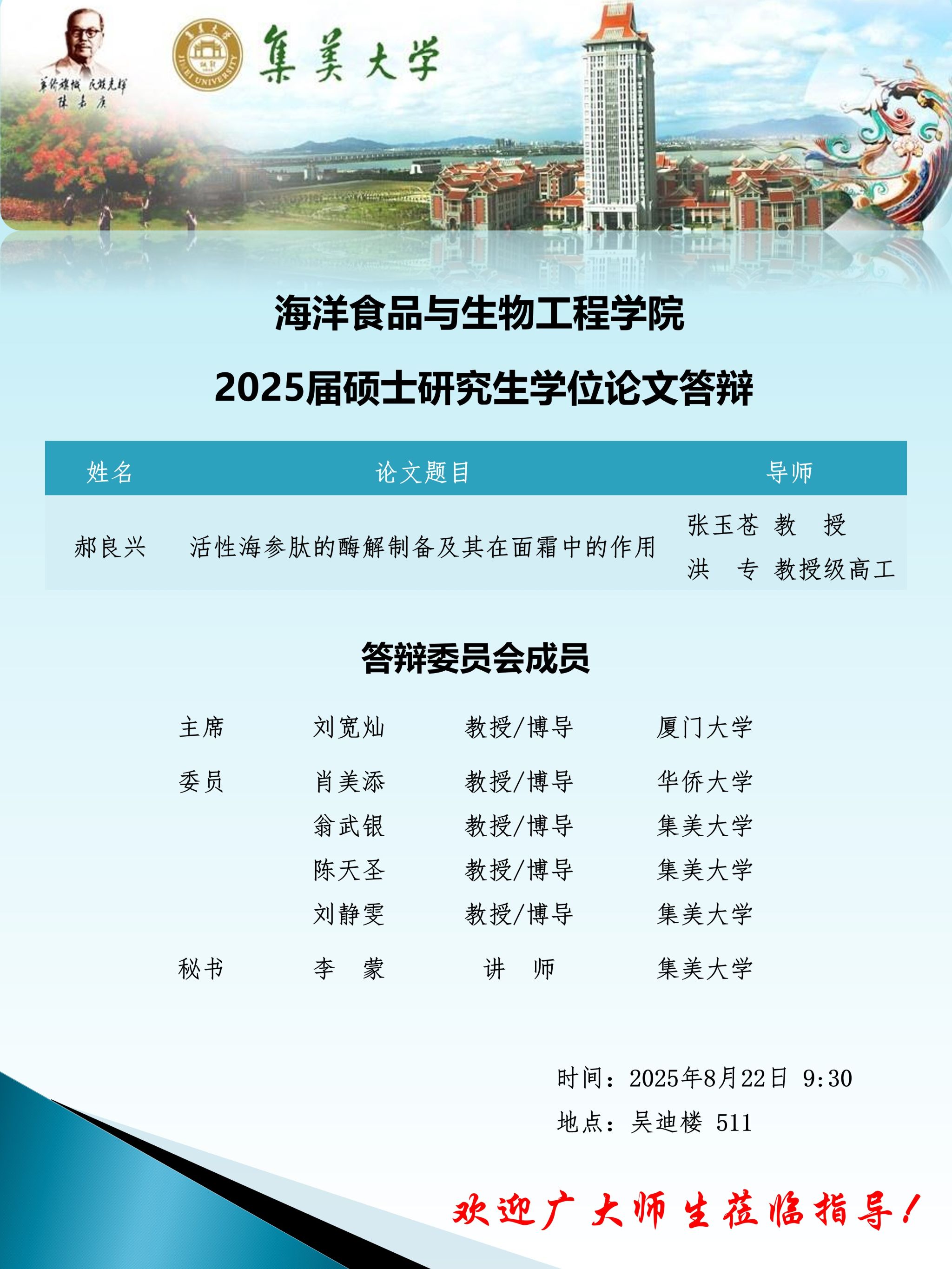 2025届硕士研究生毕业答辩公告(2025.08.22)