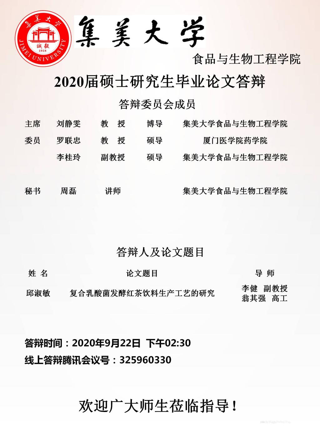 2020届研究生线上答辩公告(2020.09.22)