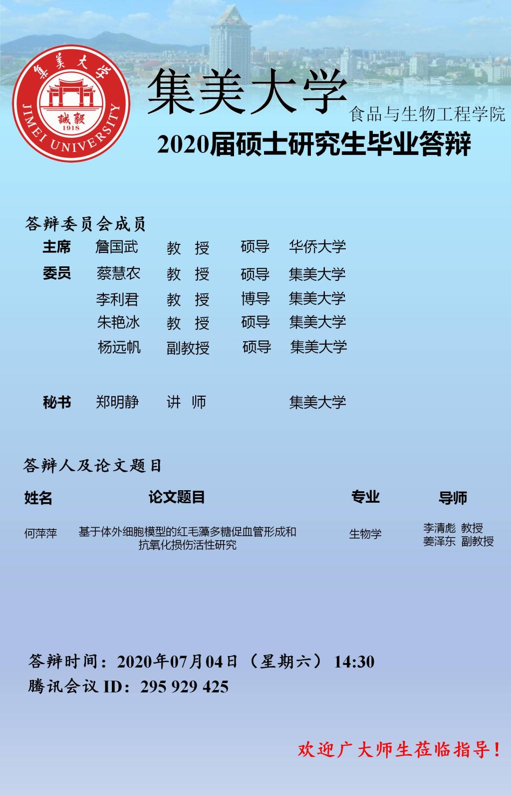 2020届研究生线上答辩公告(2020.07.04)