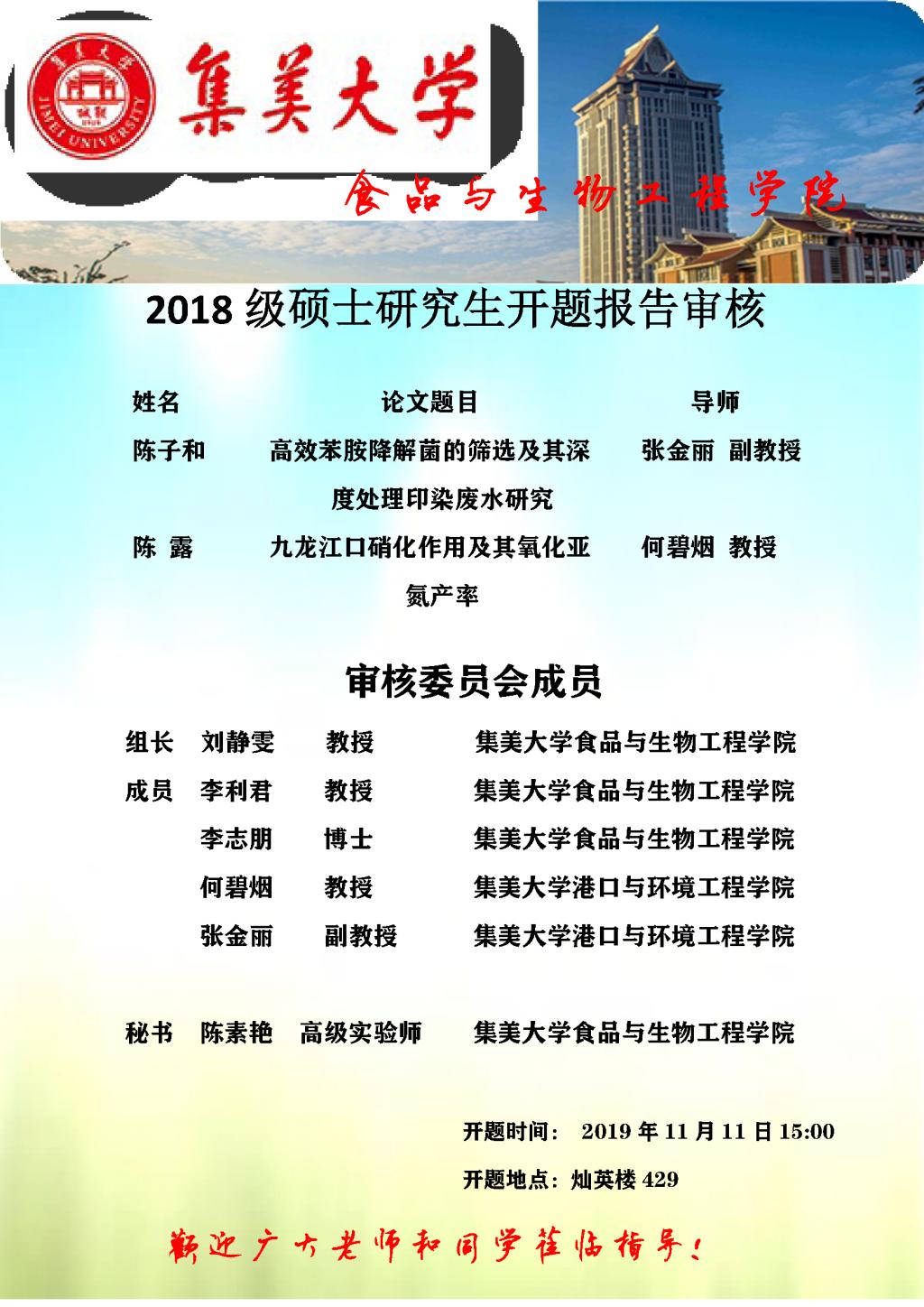 2019年硕士研究生开题报告会-2019.11.11