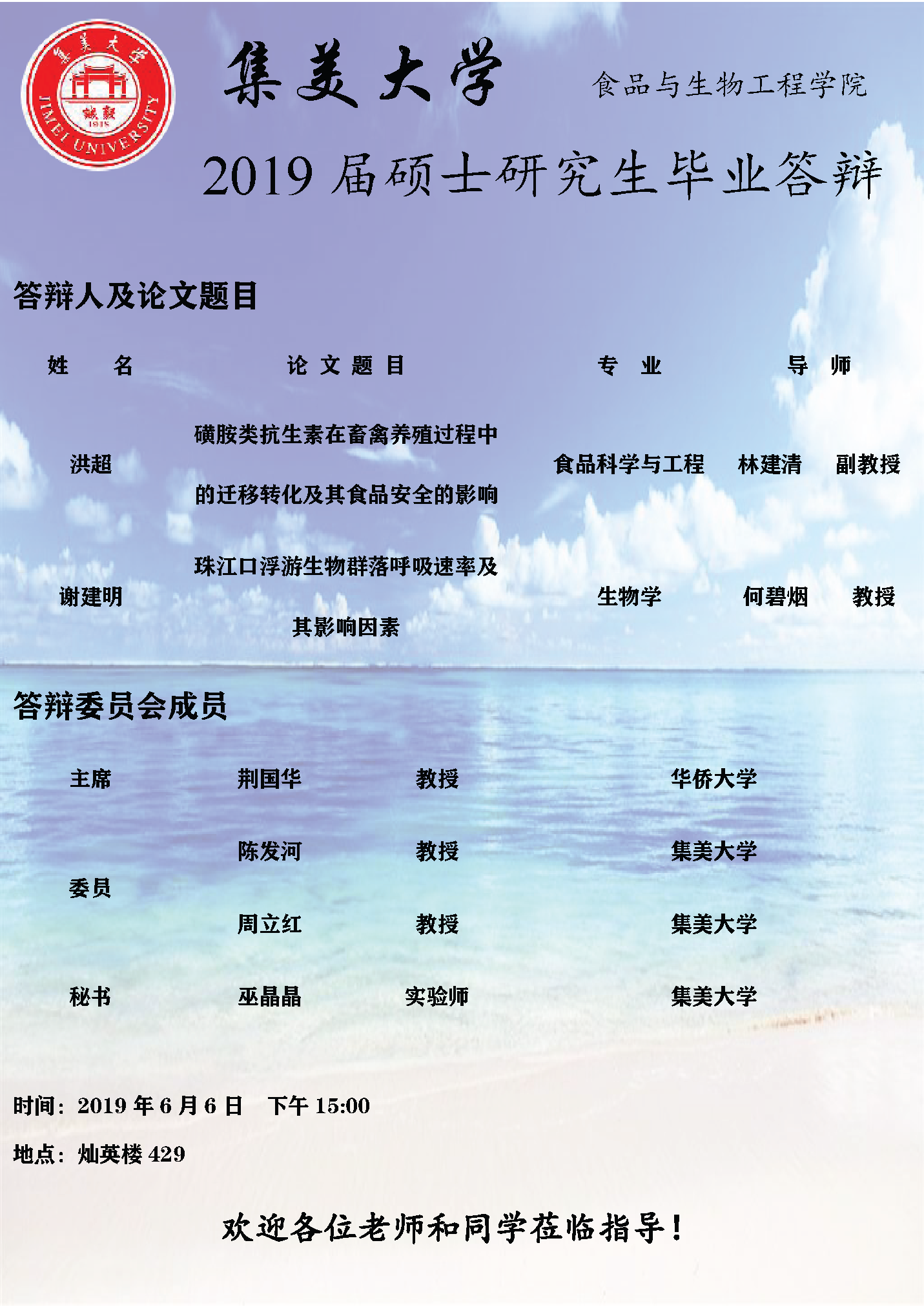 2019届硕士研究生毕业答辩公告(2019.6.6)-2