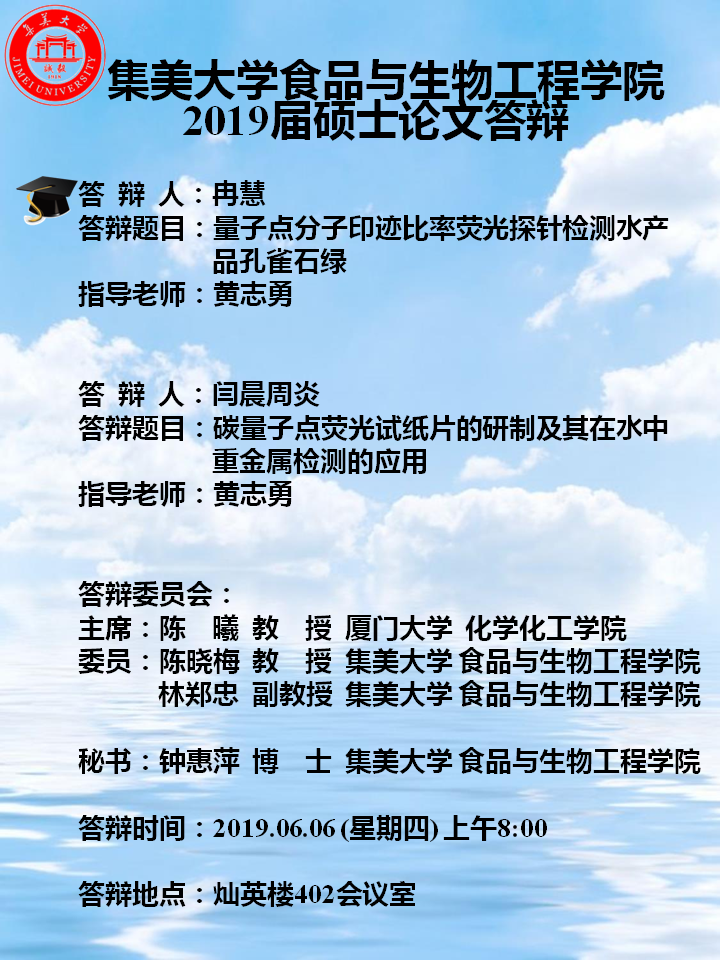 2019届硕士研究生毕业答辩公告(2019.6.6)-2