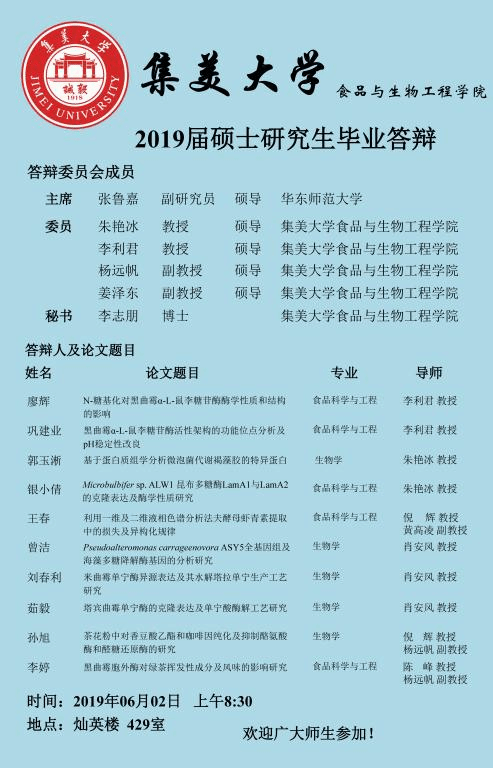 2019届硕士研究生毕业论文答辩公告(2019.6.2)-2