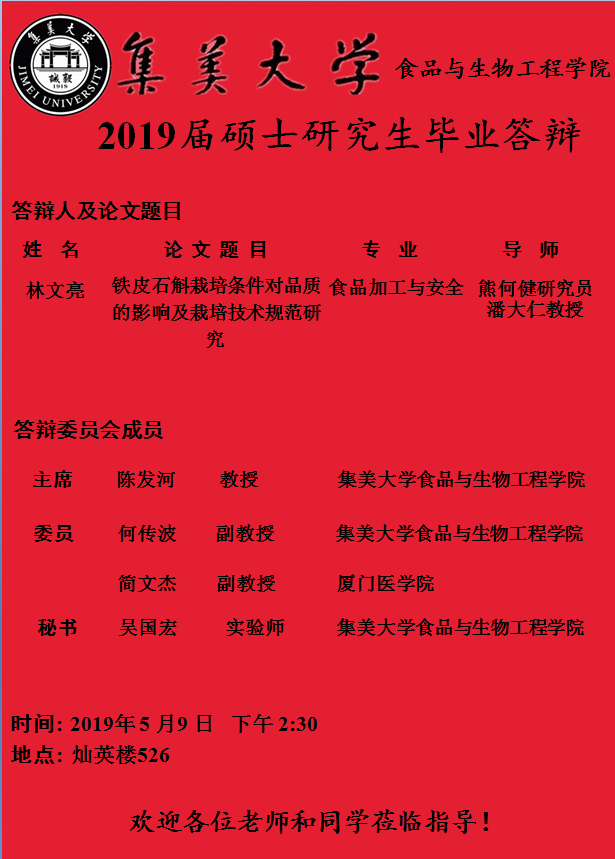 2019届硕士研究生毕业论文答辩公告(2019.5.9)