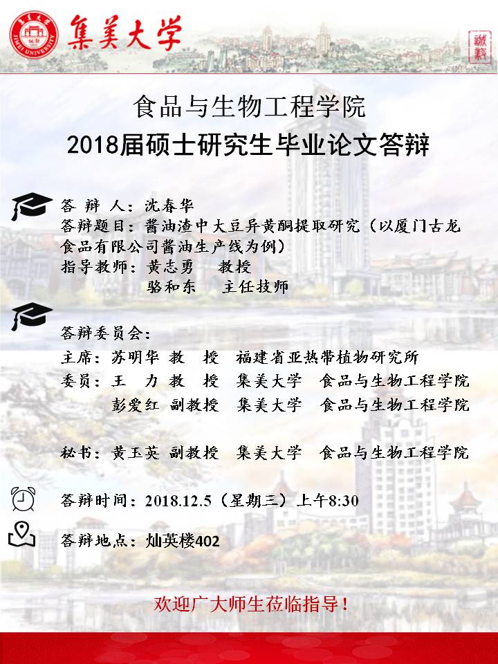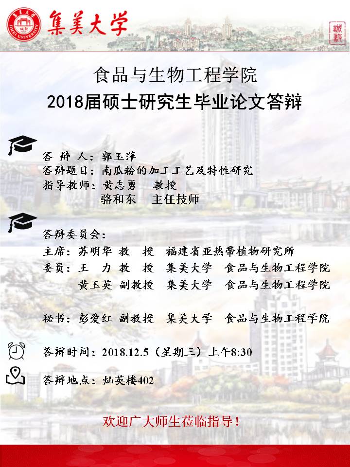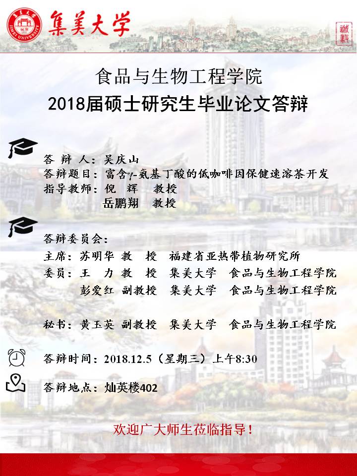 2018年12月毕业硕士研究生答辩公告(2018.12.6)