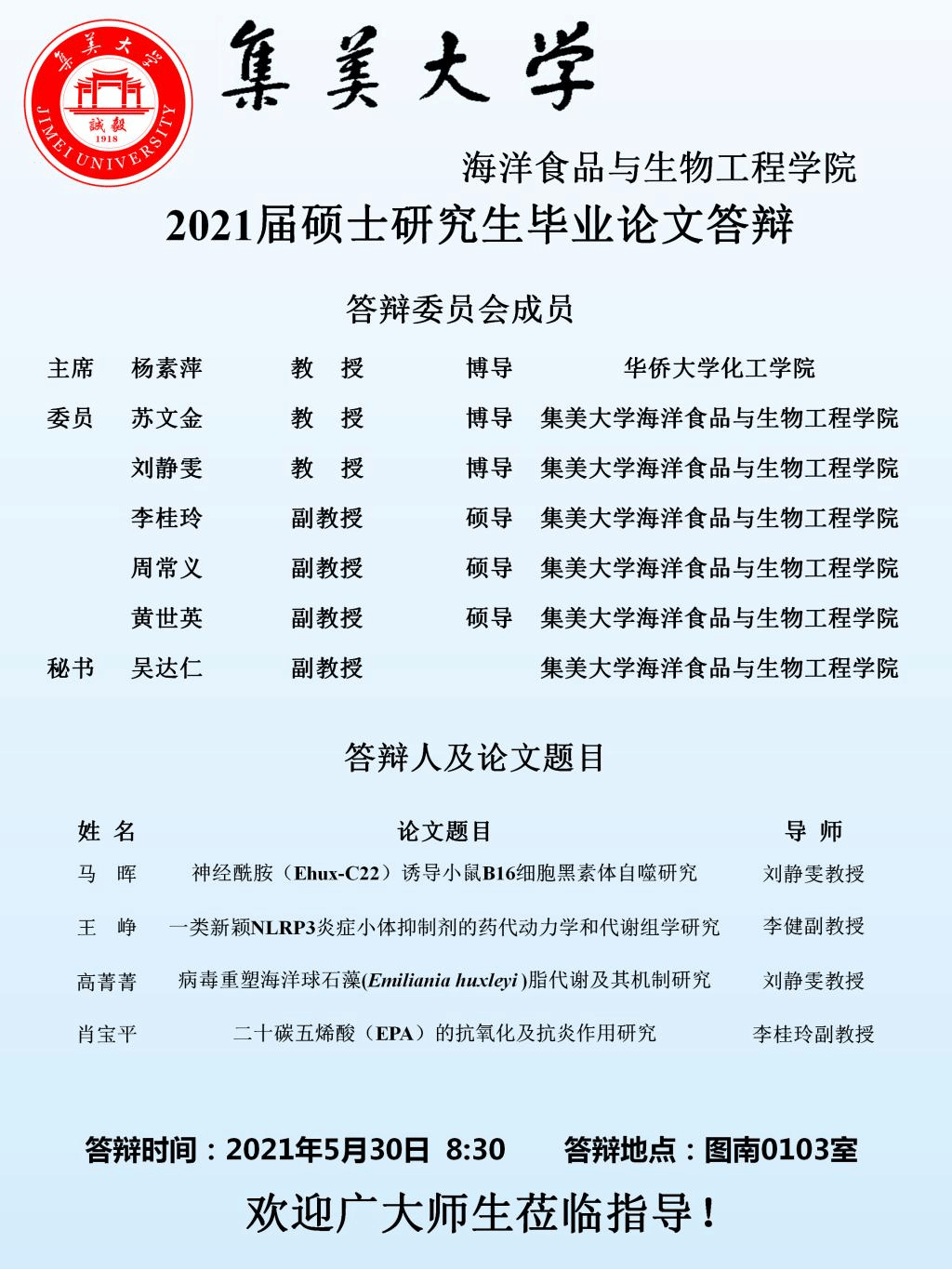 2021届硕士研究生学位论文答辩会(2021.5.30)