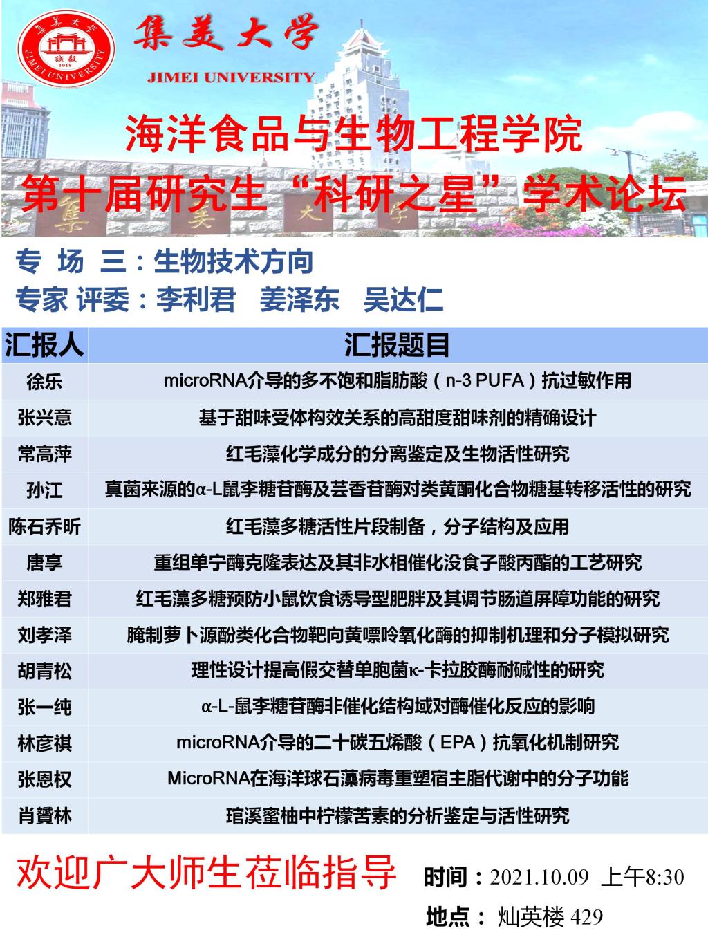 2021年研究生科技节系列活动-学术论坛专场四(水产品方向)
