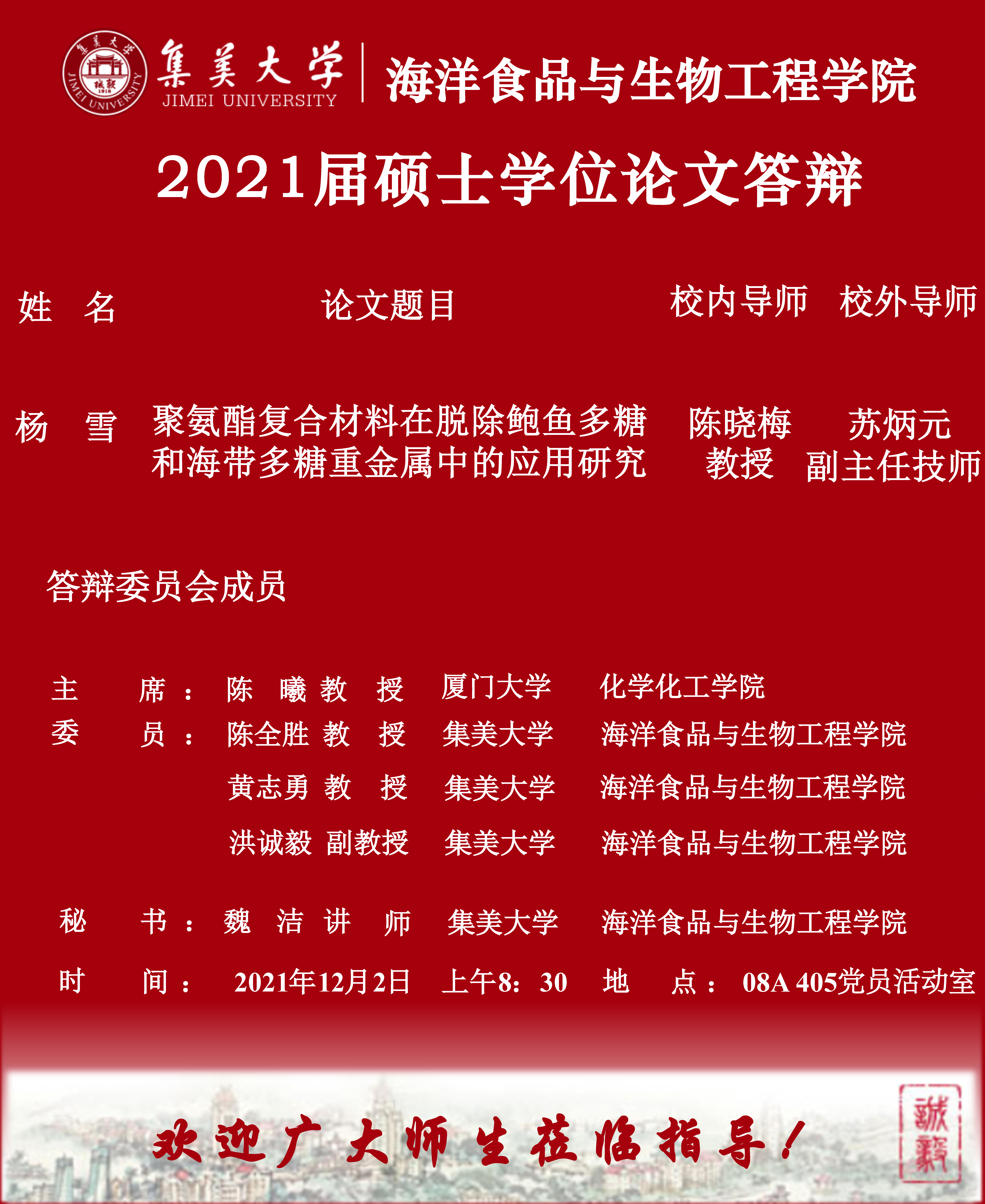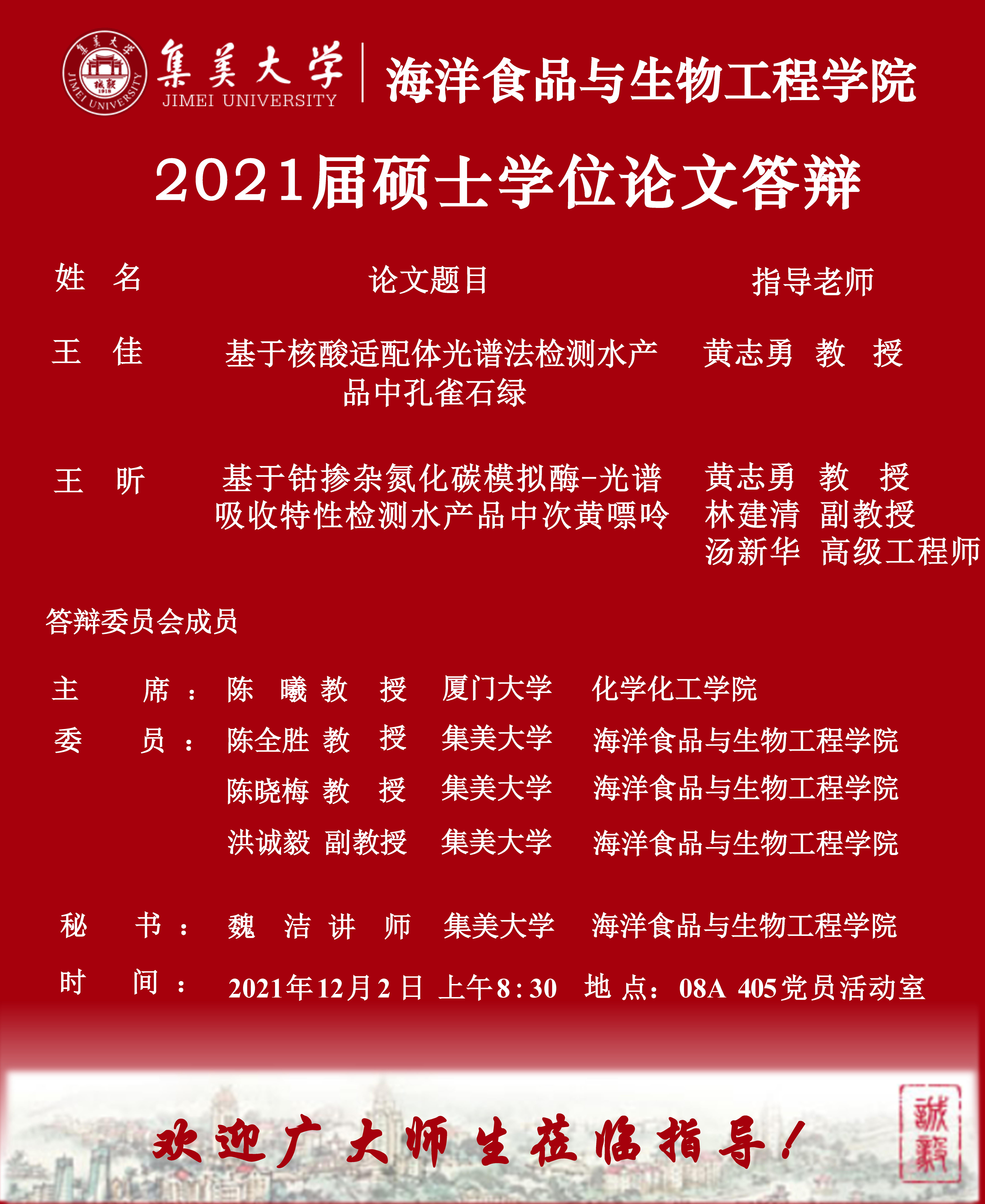 2021届硕士研究生毕业论文答辩公告(2021.12.02下午)