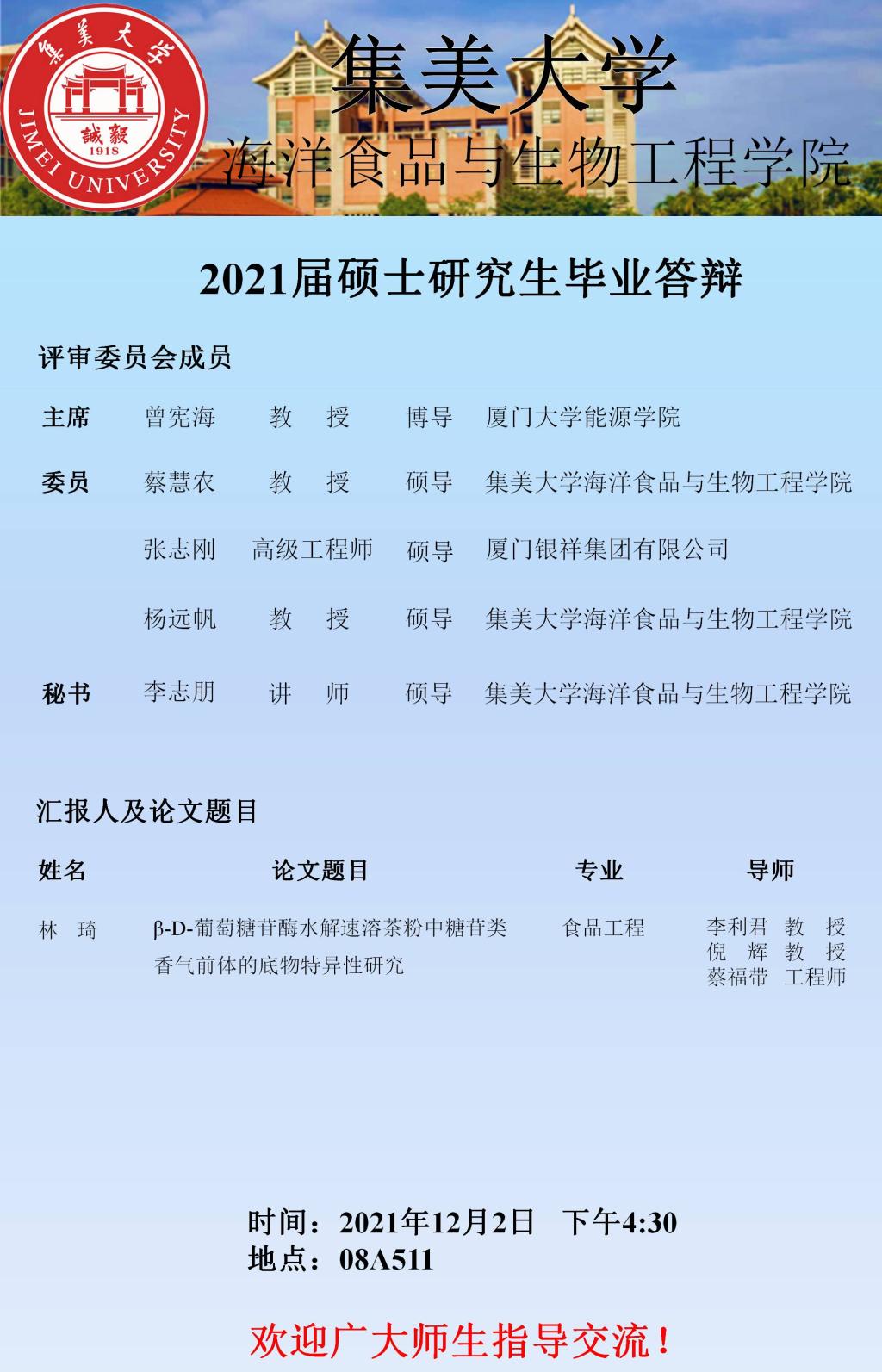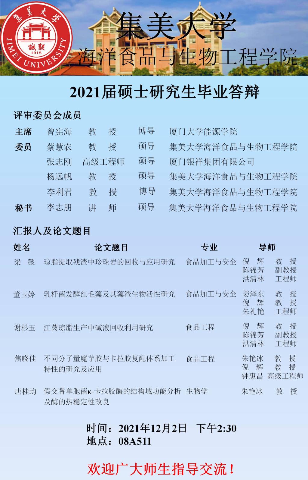 2021届硕士研究生毕业论文答辩公告(2021.12.02下午)