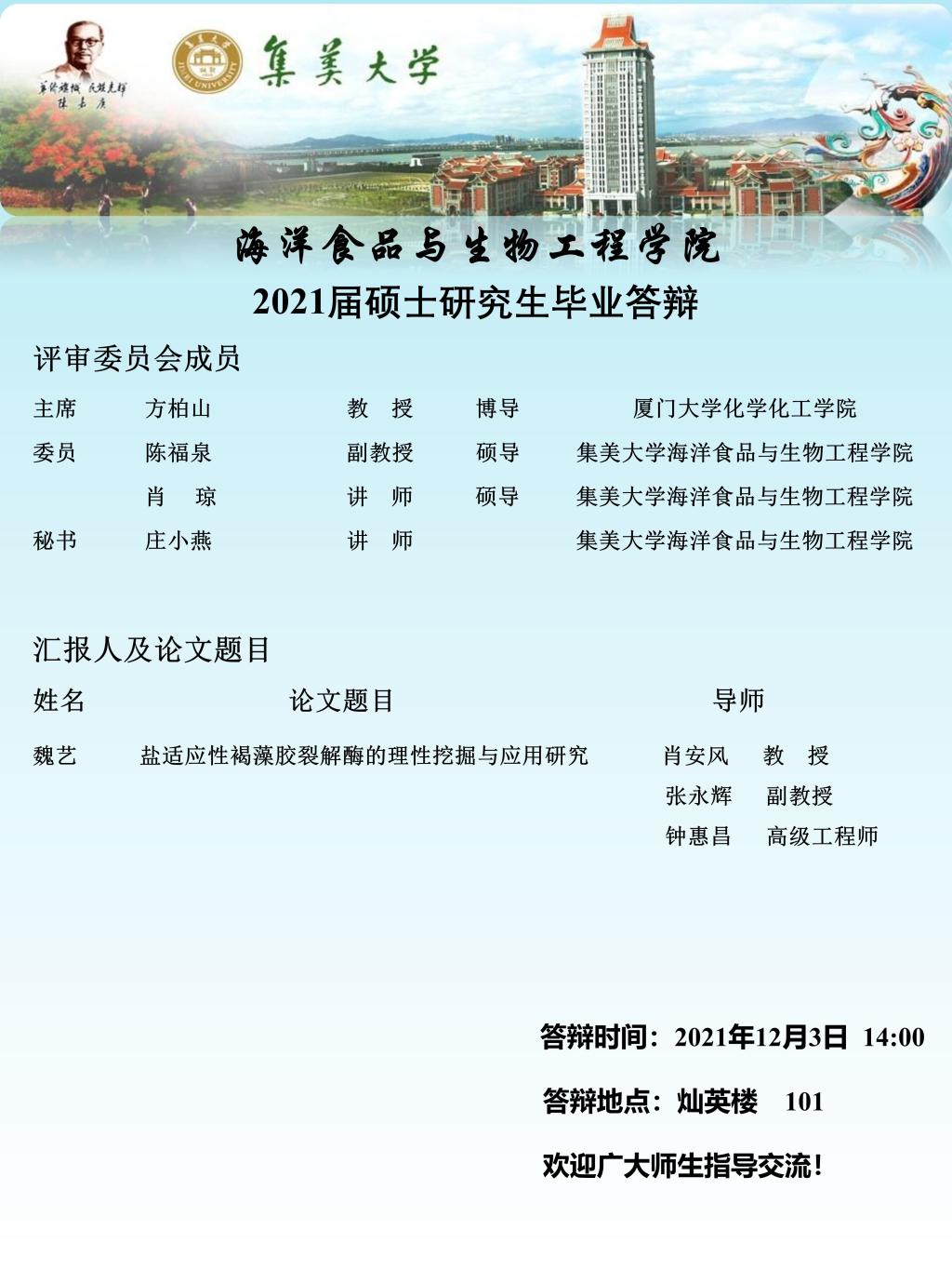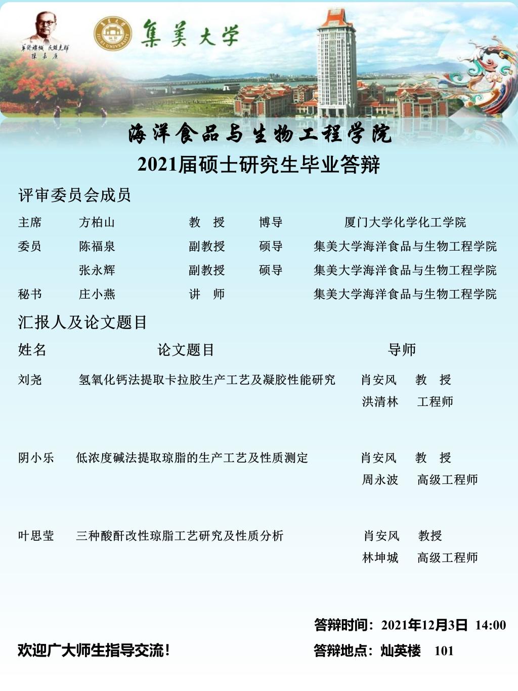 2021届硕士研究生毕业论文答辩公告(2021.12.03上午)