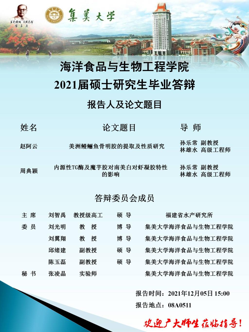 2021届硕士研究生毕业论文答辩公告(2021.12.05)