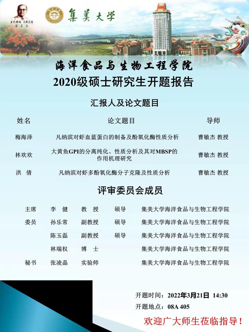 上一条:2022届博士研究生毕业论文预答辩公告(2022.04.18) 下一条:2020级硕士研究生开题汇报会(2022.1.7)