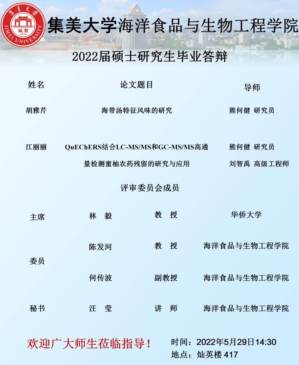 2022届硕士研究生毕业论文答辩公告(2022.05.29)