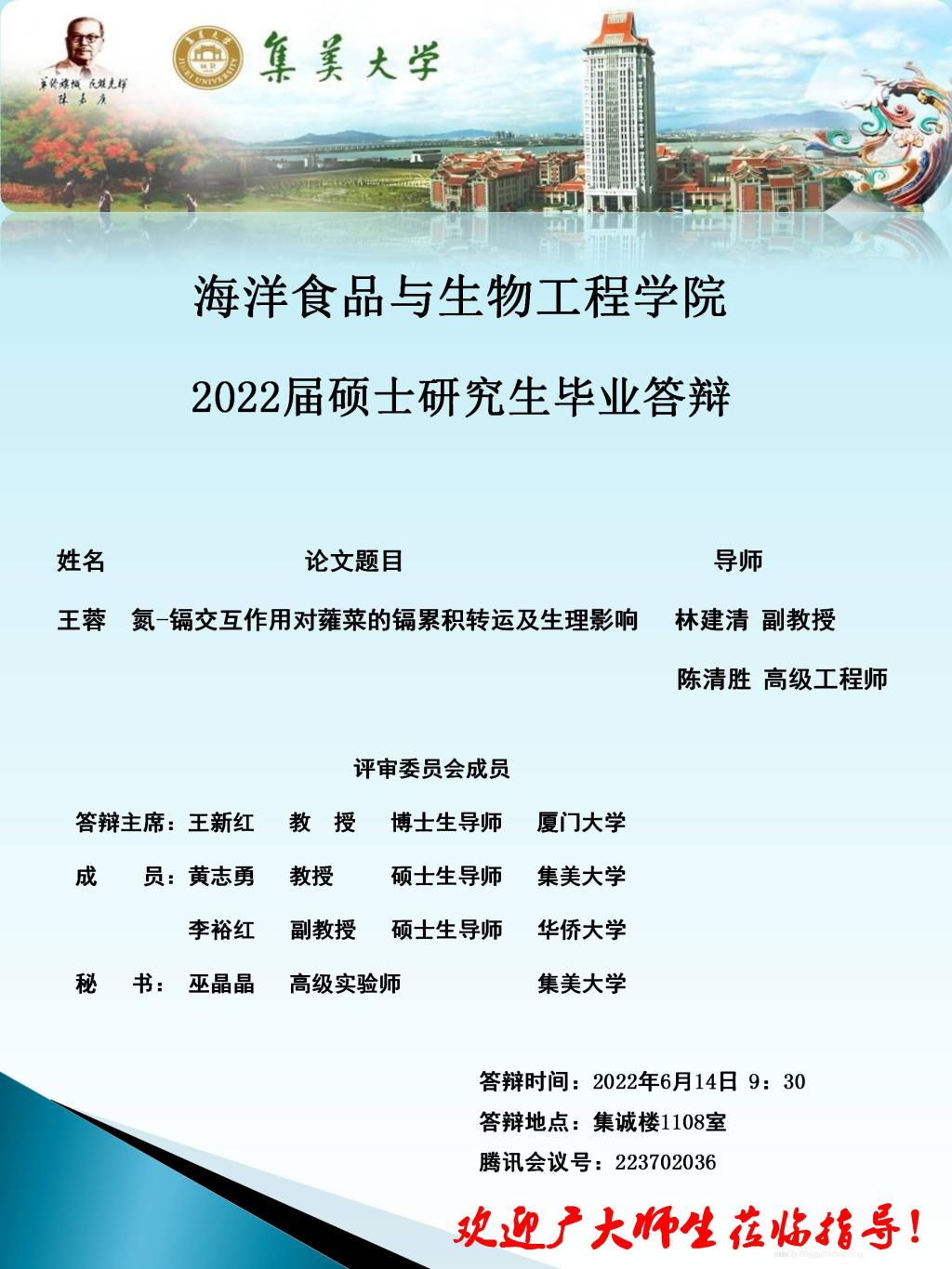 2022届硕士研究生毕业论文答辩公告(2022.06.14)