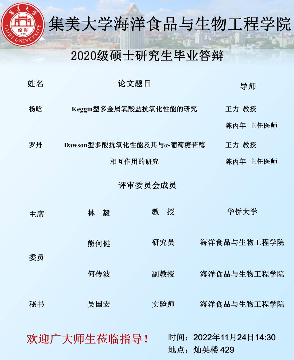 2022届硕士研究生毕业答辩公告(2022.11.24)