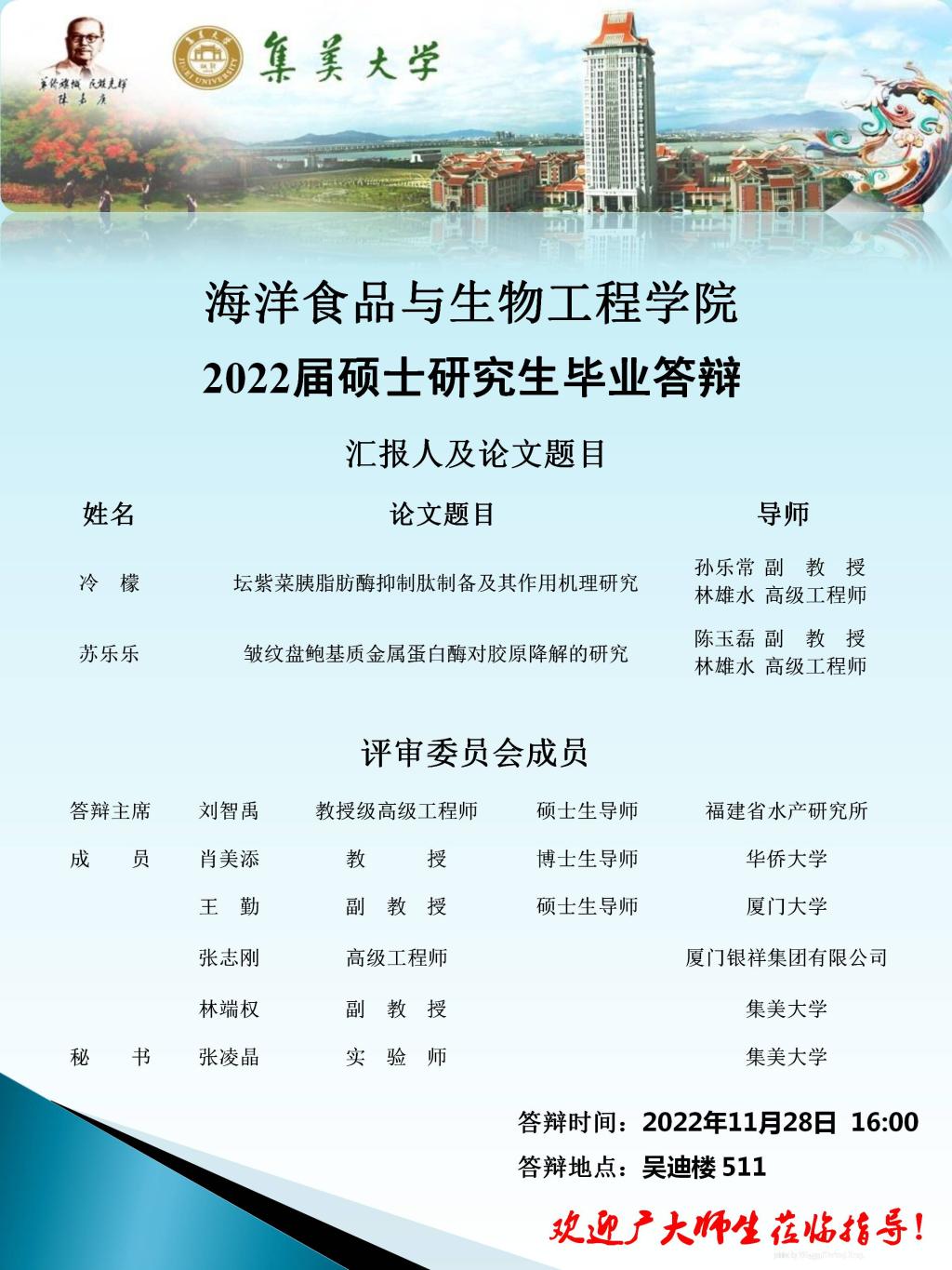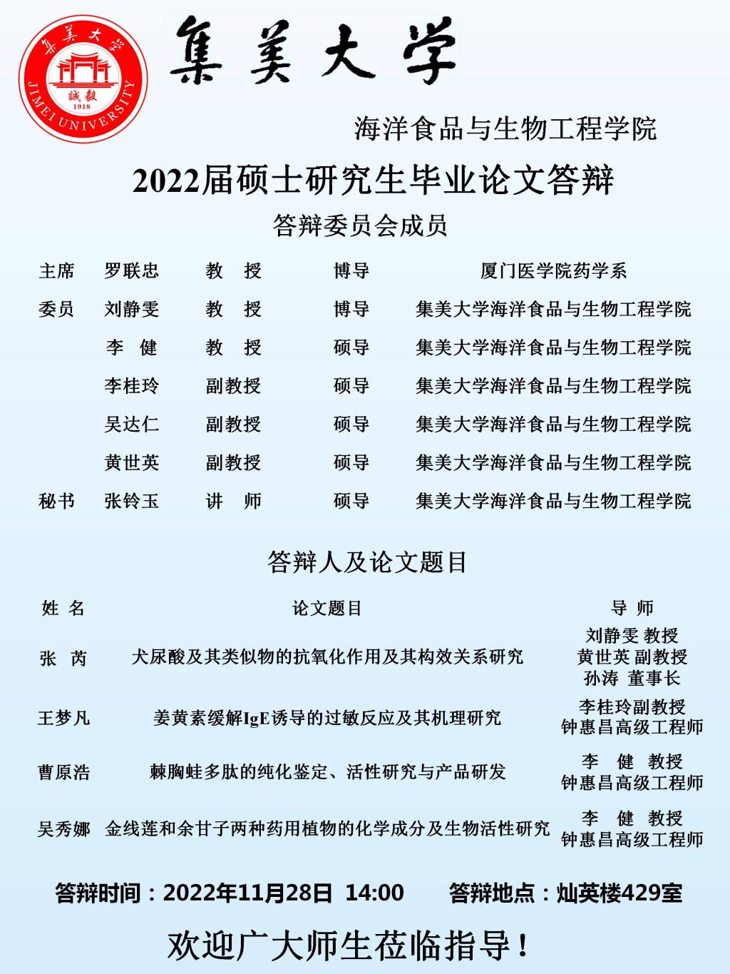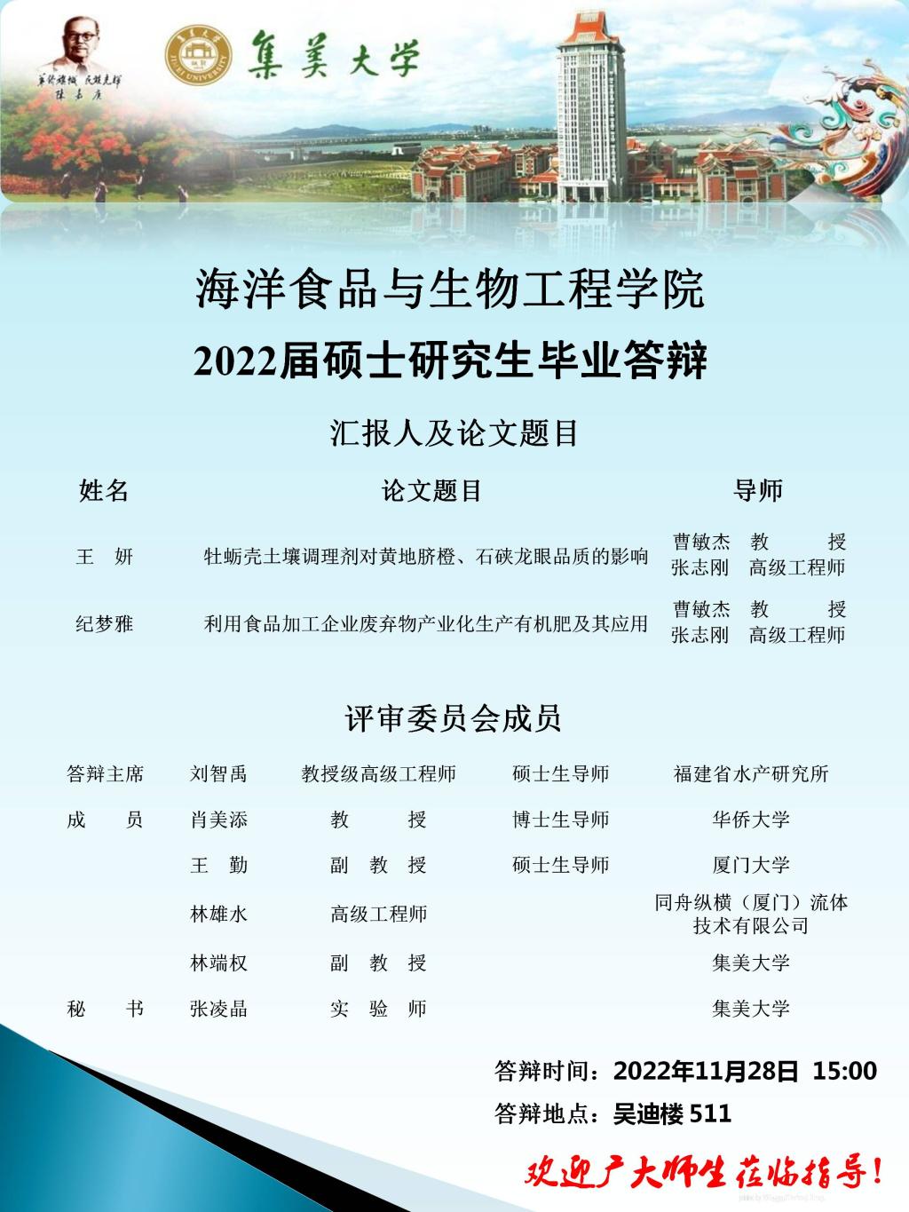 2022届硕士研究生毕业答辩公告(2022.11.28)有更新