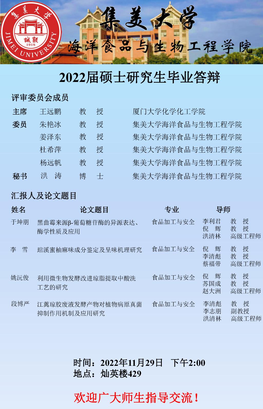 2022届硕士研究生毕业答辩公告(2022.11.29)有更新