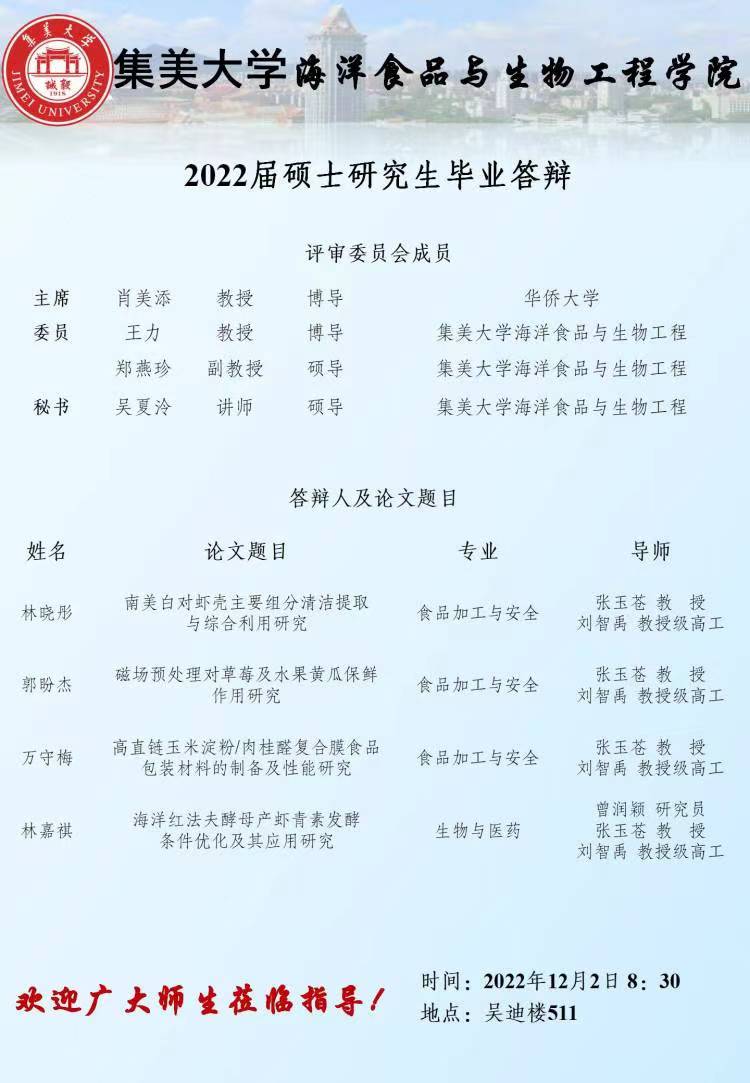2022届硕士研究生毕业答辩公告(2022.12.2)
