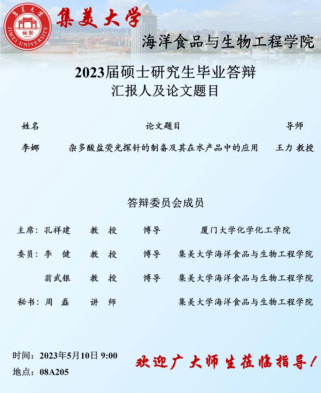 2023届硕士研究生毕业答辩公告(2023.05.14)