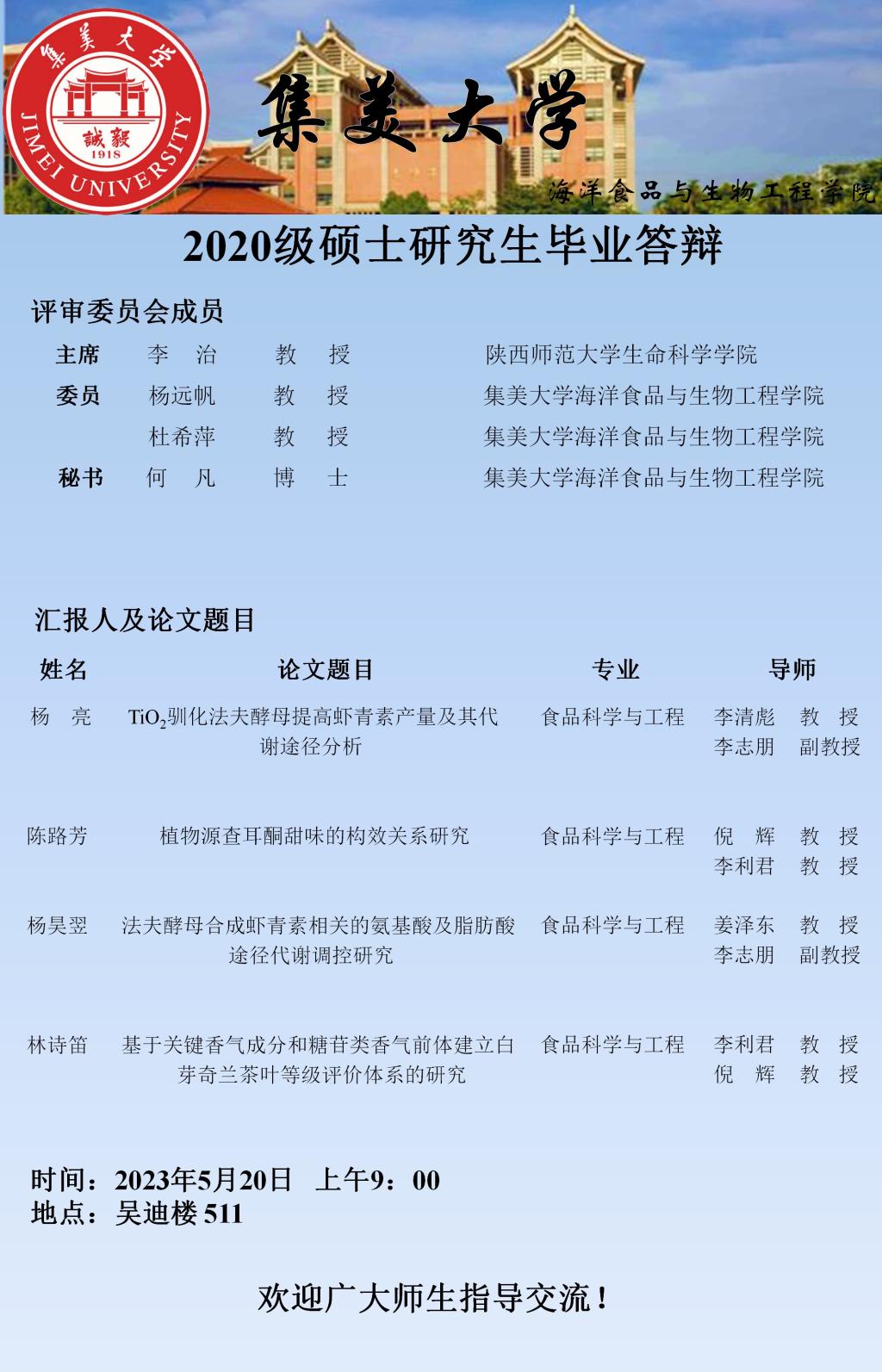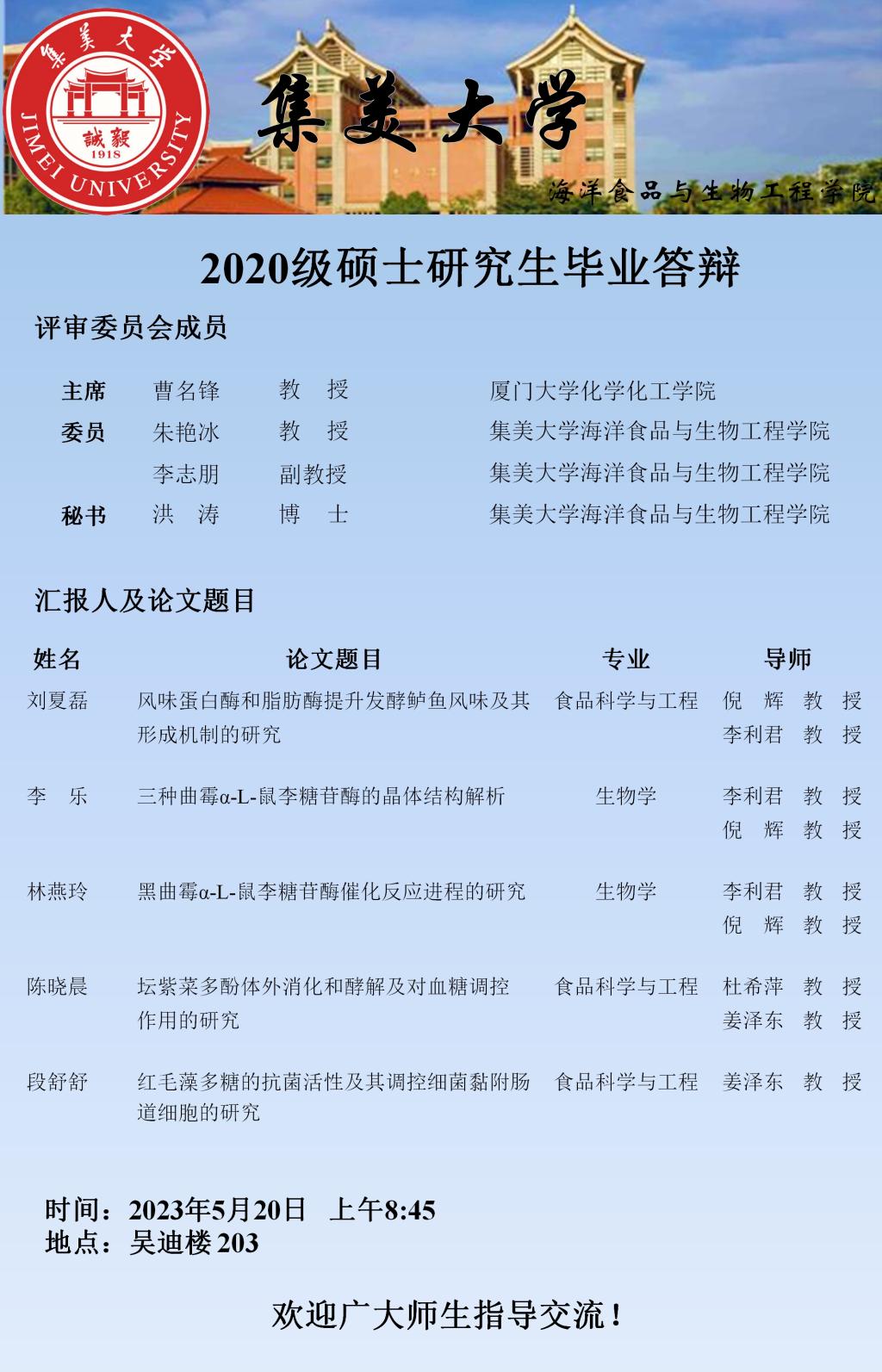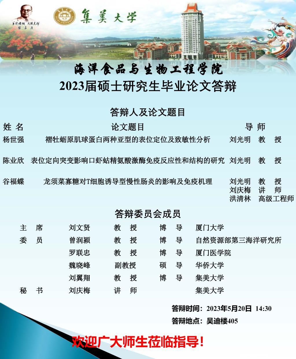 2023届硕士研究生毕业答辩公告(2023.05.20)