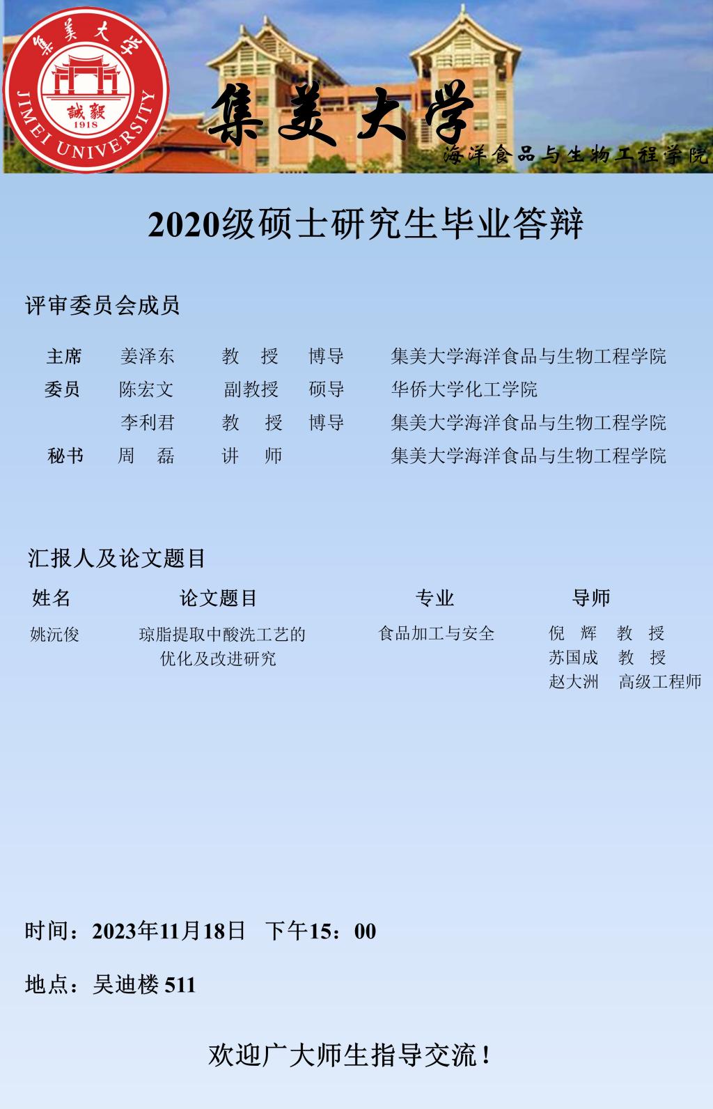 2023届硕士研究生毕业答辩公告(2023.11.18)