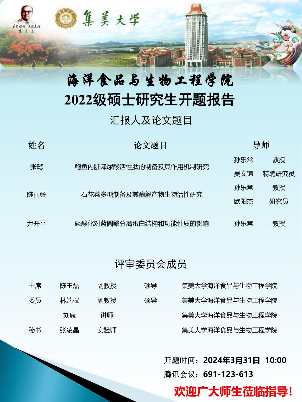 2024届硕士研究生毕业答辩公告(2024.05.10)