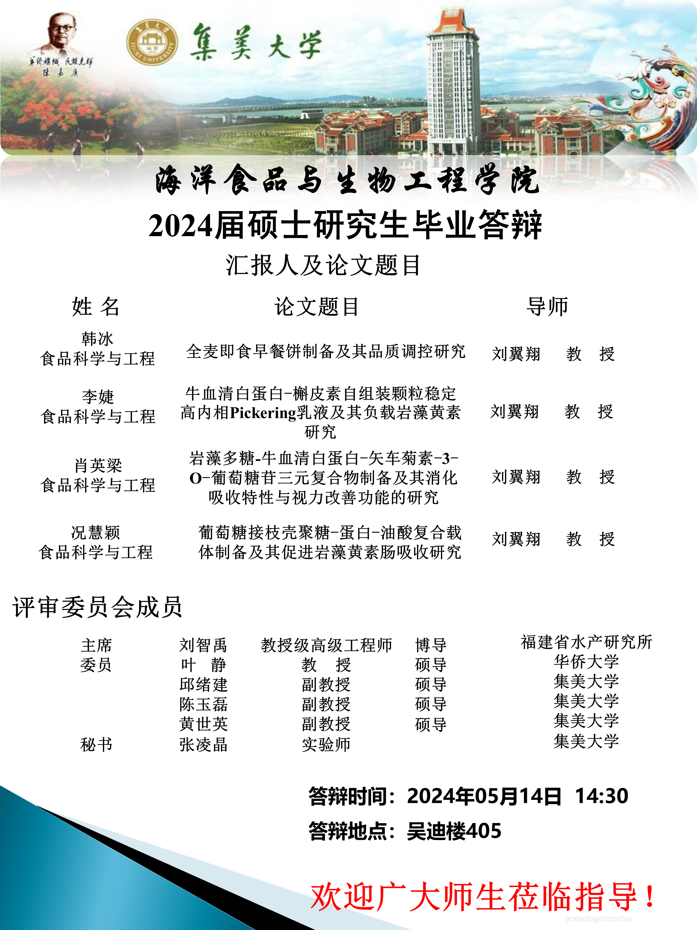 2024届硕士研究生毕业答辩公告(2024.05.14)