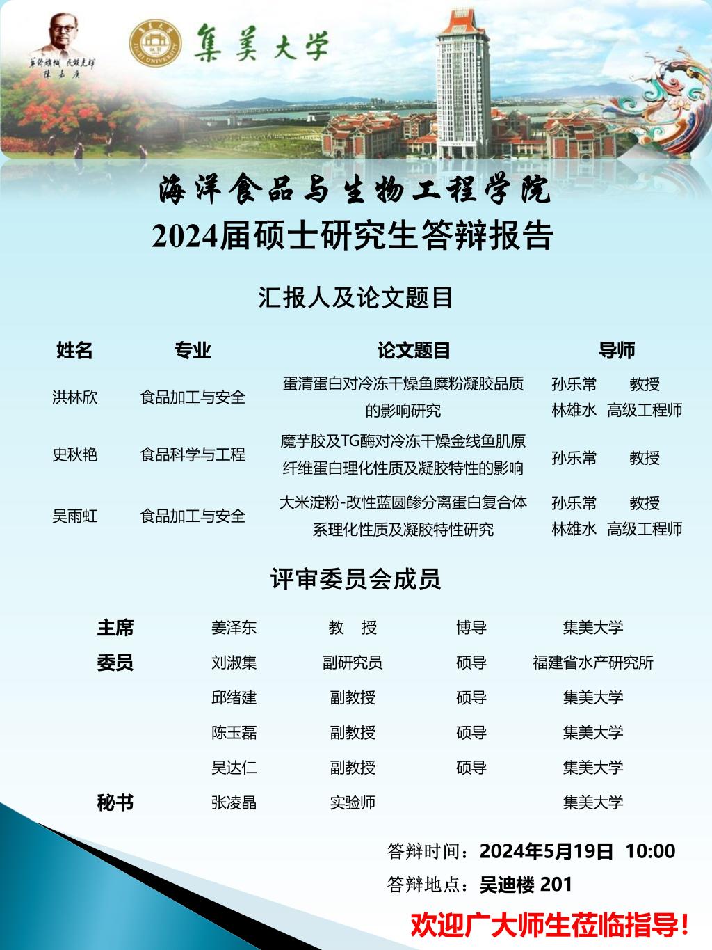 2024届硕士研究生毕业答辩公告(2024.05.19)