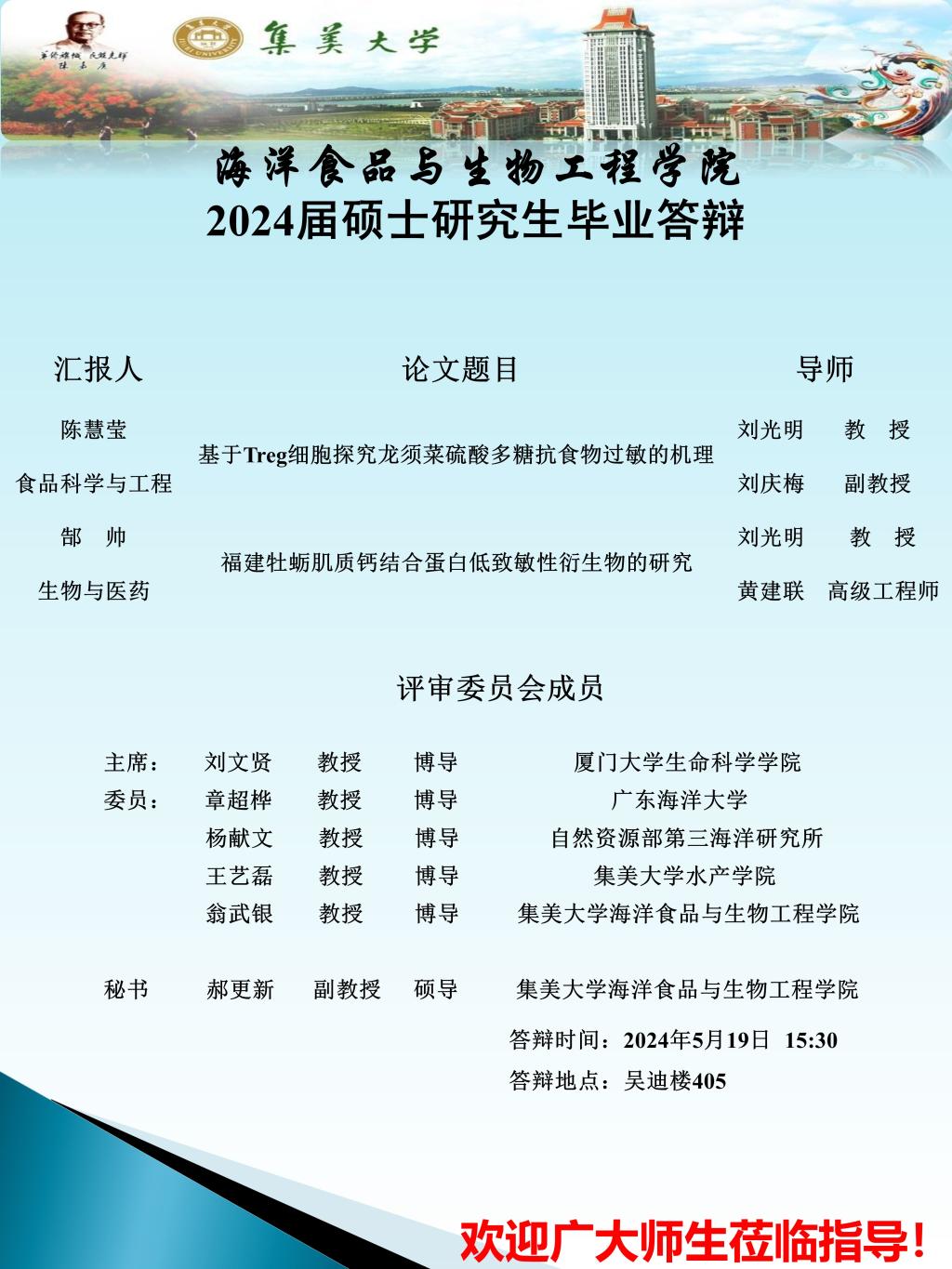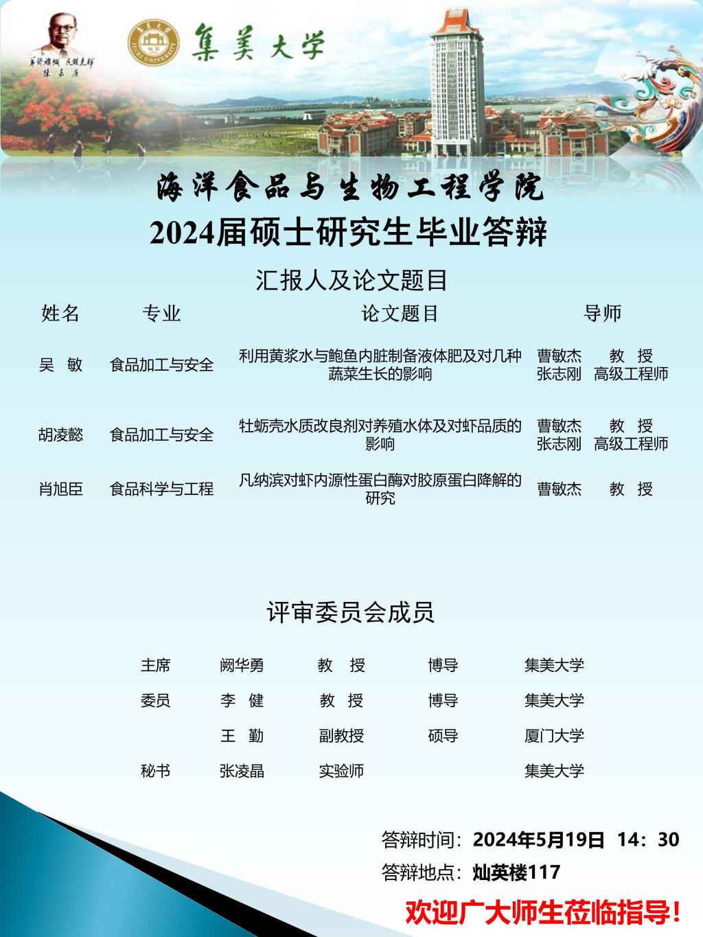 2024届硕士研究生毕业答辩公告(2024.05.17)