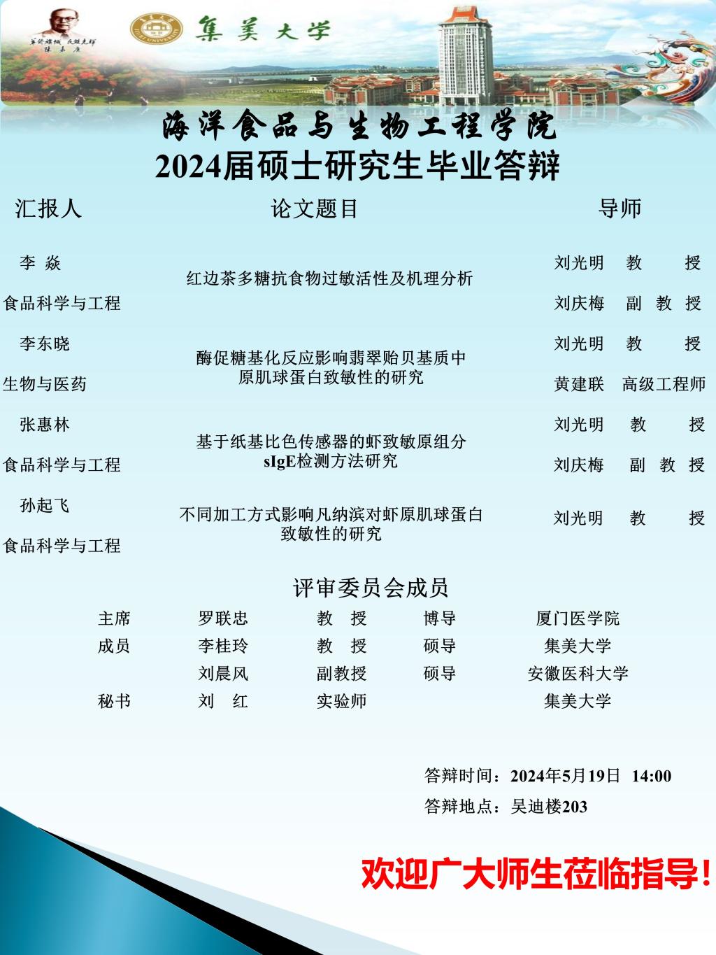 2024届硕士研究生毕业答辩公告(2024.05.20)
