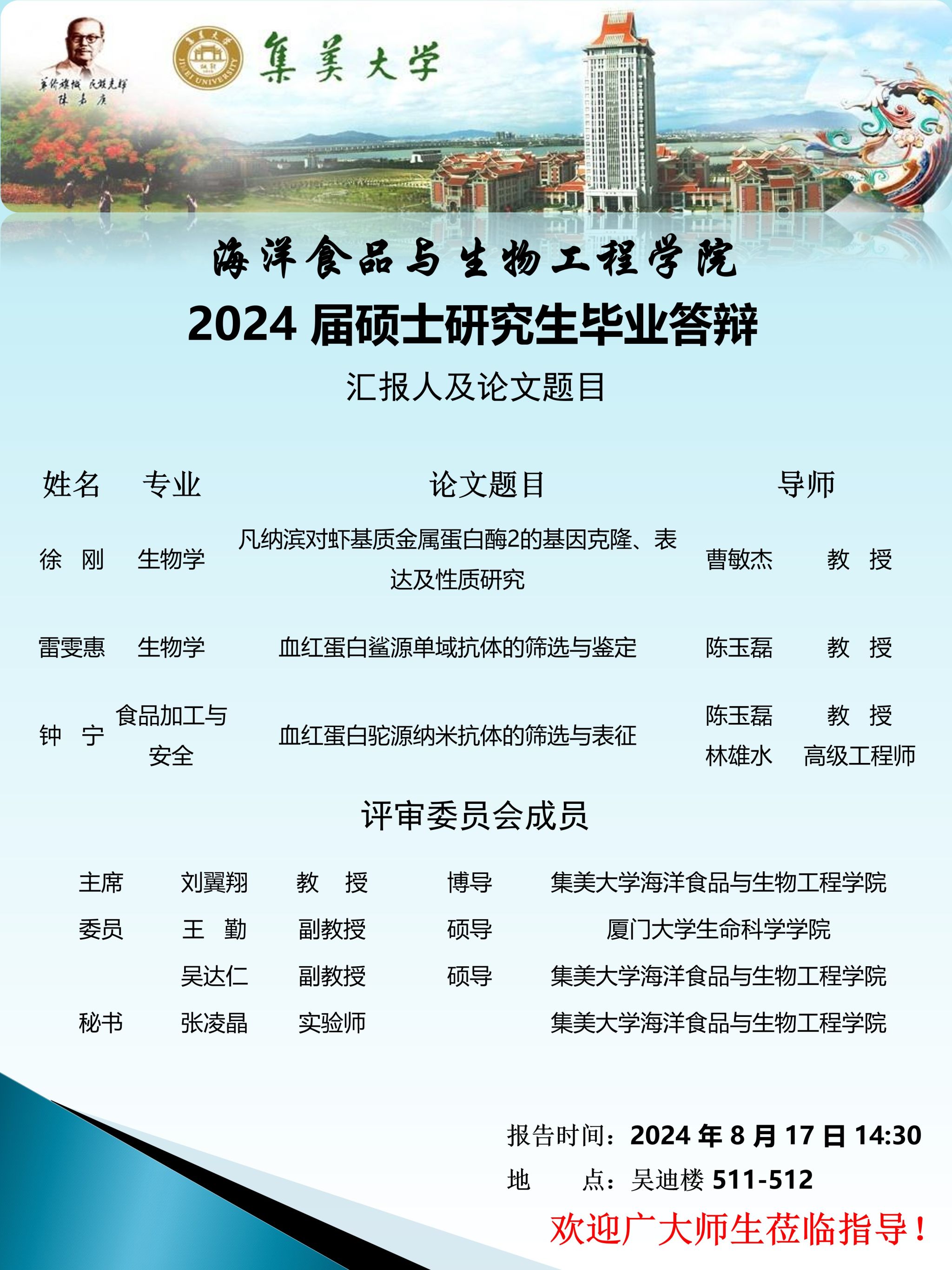 2024届硕士研究生毕业答辩公告(2024.08.17)