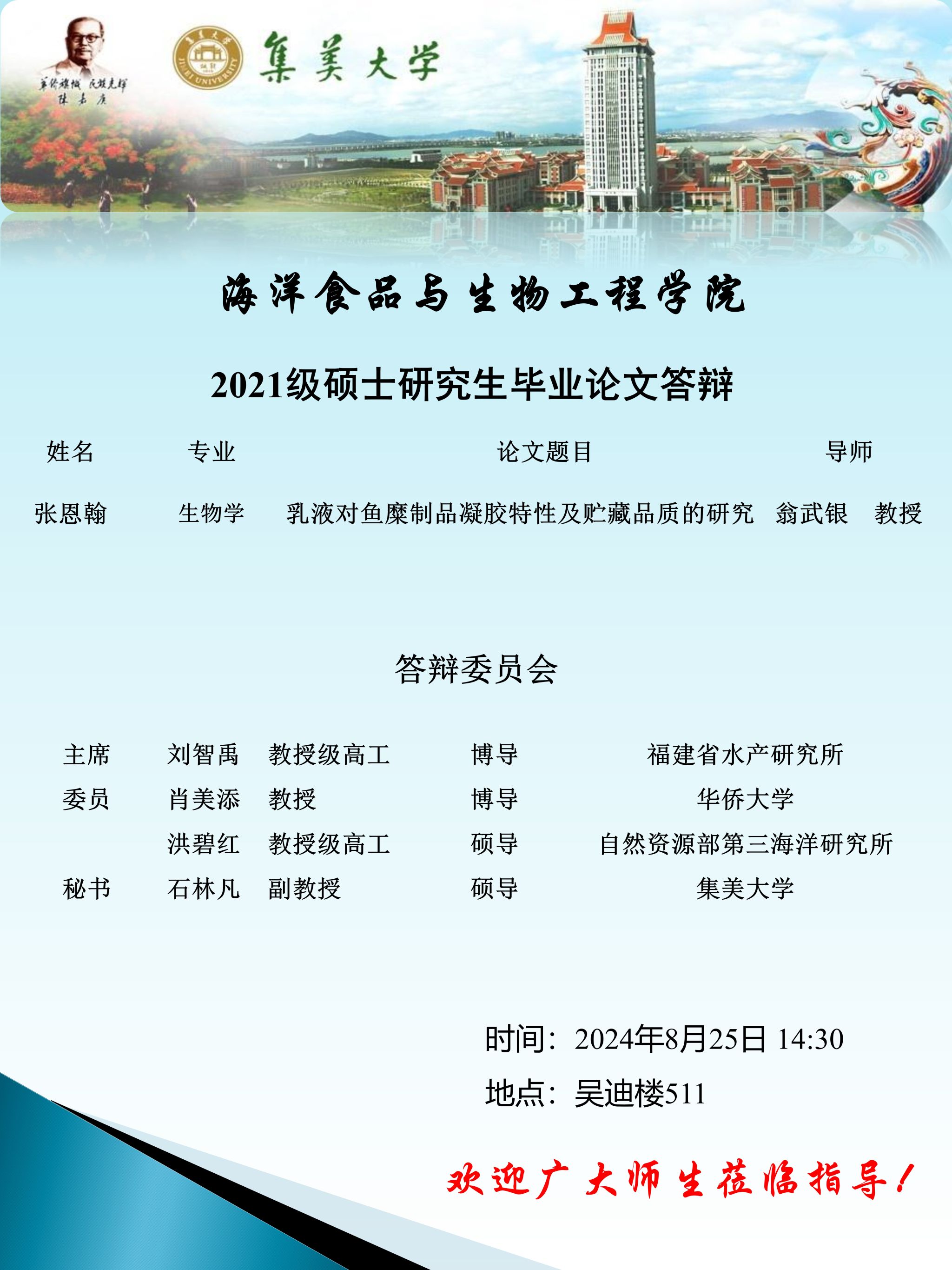 2024届硕士研究生毕业答辩公告(2024.08.25)