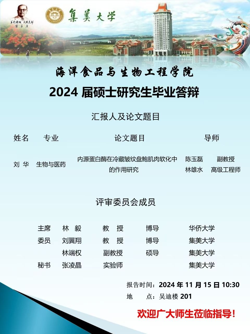 2024届硕士研究生毕业答辩公告(2024.11.15)