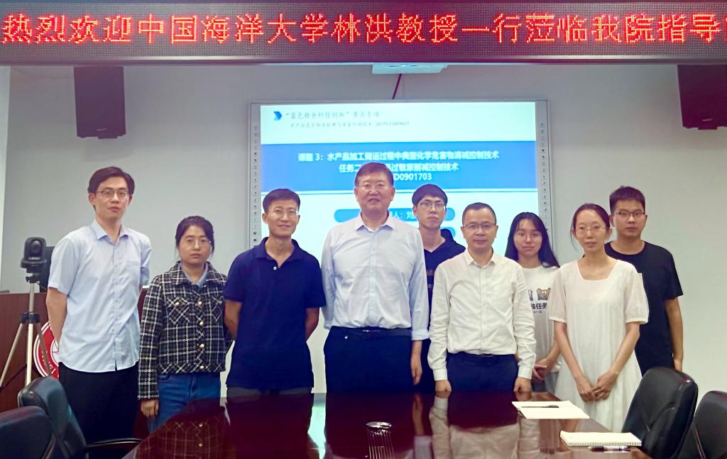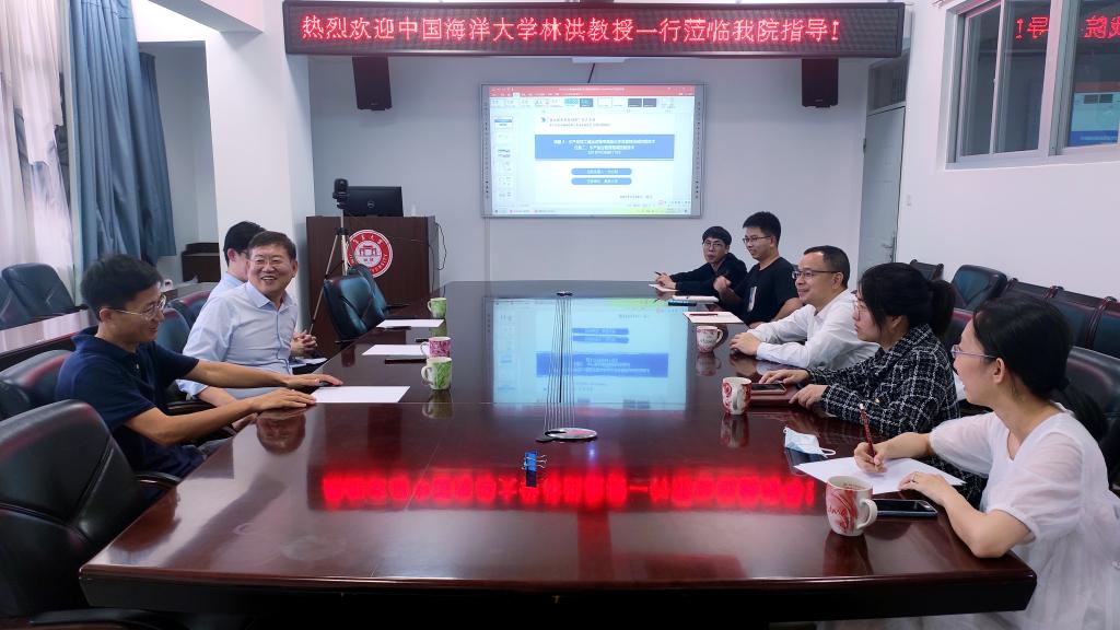 林洪教授所在中国海洋大学为国家重点研发计划“蓝色粮仓科技创新”重点专项(水产品危害物质检测与质量控制技术,2019YFD0901700)的项目牵头承担单位,我院承担了该项目中两项子课题的研究工作。交流中,刘光明教授和曾珺副教授先后汇报了课题任务研究进展,林洪教授就此提出了启发性的问题和建议,并针对水产品质量安全相关问题与学院师生进行了深入交流。