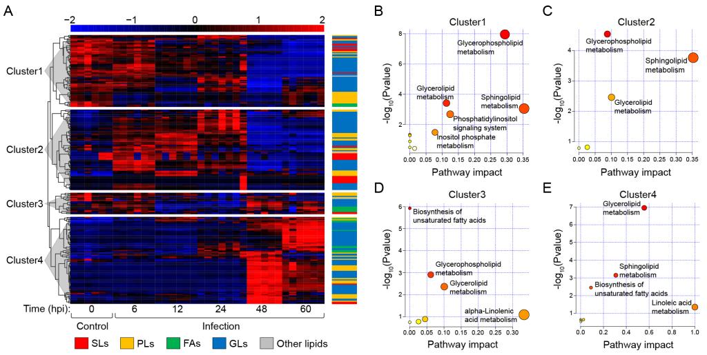 图1.“病毒细胞(Virocell)”脂代谢网络的动态变化规律