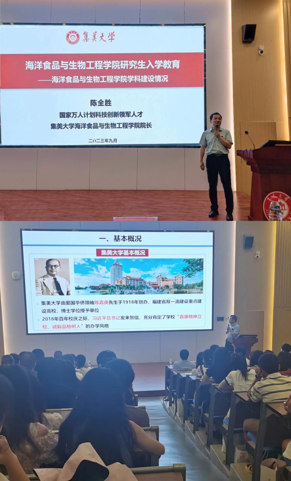 陈全胜院长为2023级研究生新生上开学第一课,介绍了学校概况,以大量详实的数据分析了学院的师资队伍、科学研究、人才培养等方面的优势,对研究生的学习生涯提出中肯建议,并寄语新同学:事虽难,做则成;路虽远,行则至。